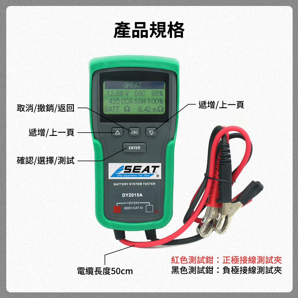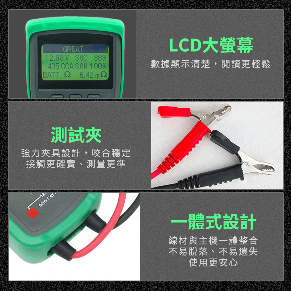 準確度高好辨識➤同時顯示標準CCA值與電瓶CCA值,更容易判斷,測量更準確,還有貼心小圖示幫您判定電瓶可否使用
