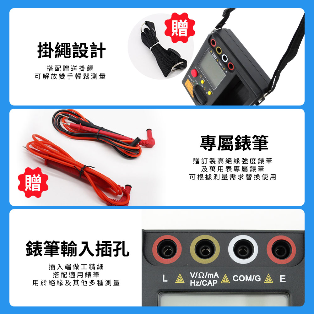 ✔一機兩用:數位絕緣阻抗測試計+萬用表功能(分開使用)