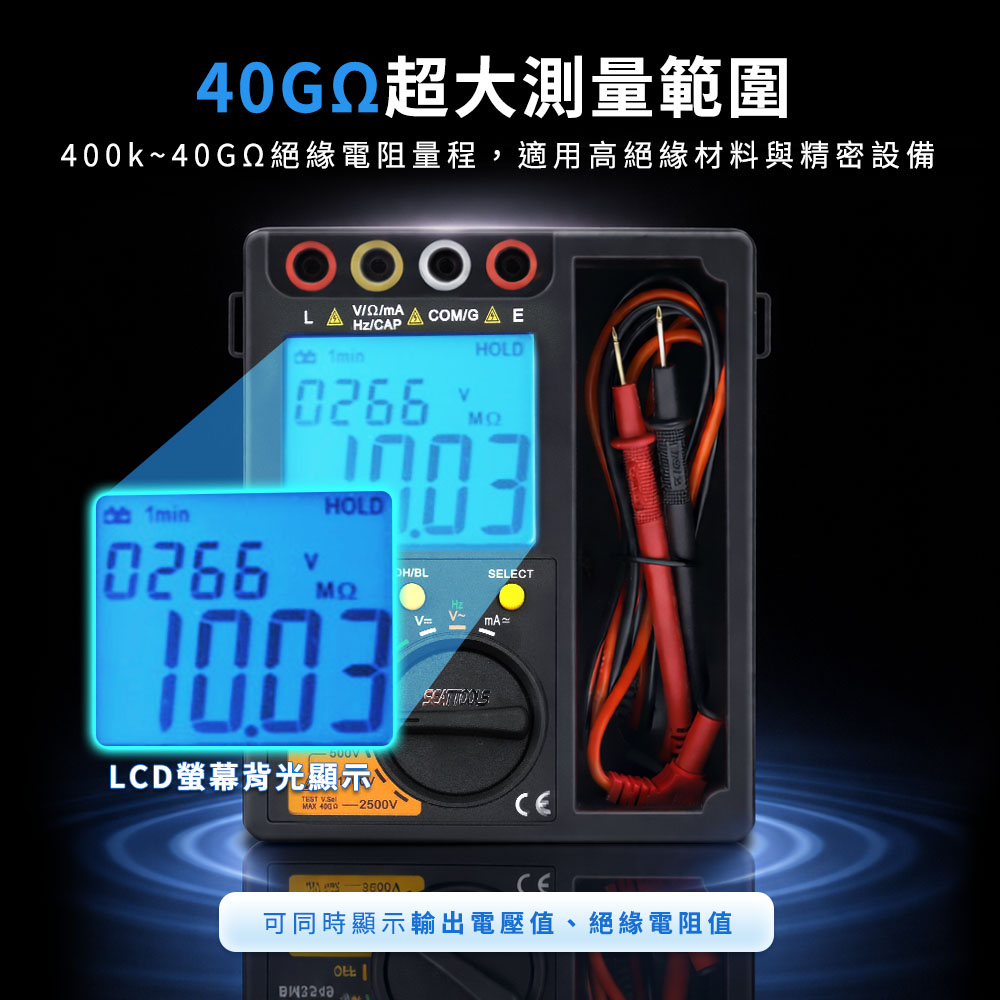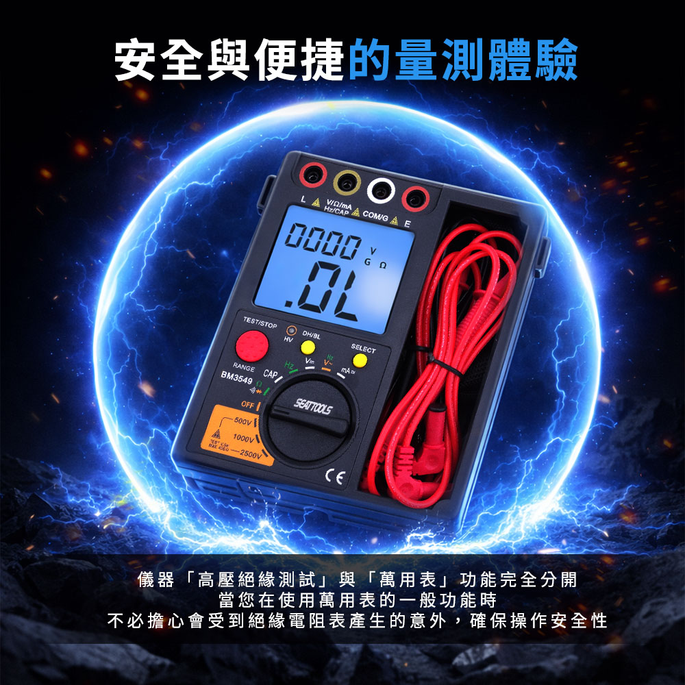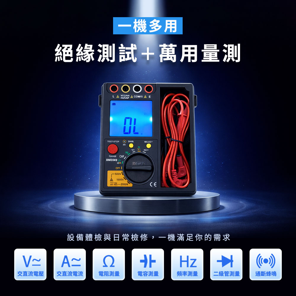 一機雙用,安全檢測一次到位! 結合絕緣阻抗測試與數位萬用錶兩大功能,專為電力維修、設備檢測設計。無論是檢測電纜絕緣狀態,還是量測電壓、電流、電阻,都能提供高精度、快速穩定的讀值。