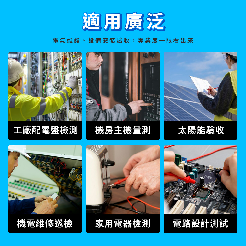 配電盤電流看不清、夾錯線又怕燒表?專為電工與維修人員設計。42mm大鉤口輕鬆夾住粗線束,量測交流電流、交直流電壓、電阻、頻率、導通、二極體一次搞定。背光螢幕暗處也清楚讀值,內建過載保護,降低誤測風險。搭配收納包與儀器箱,外出施工好帶又耐用,是機電維修、工廠保養、家用電力檢修的可靠幫手。