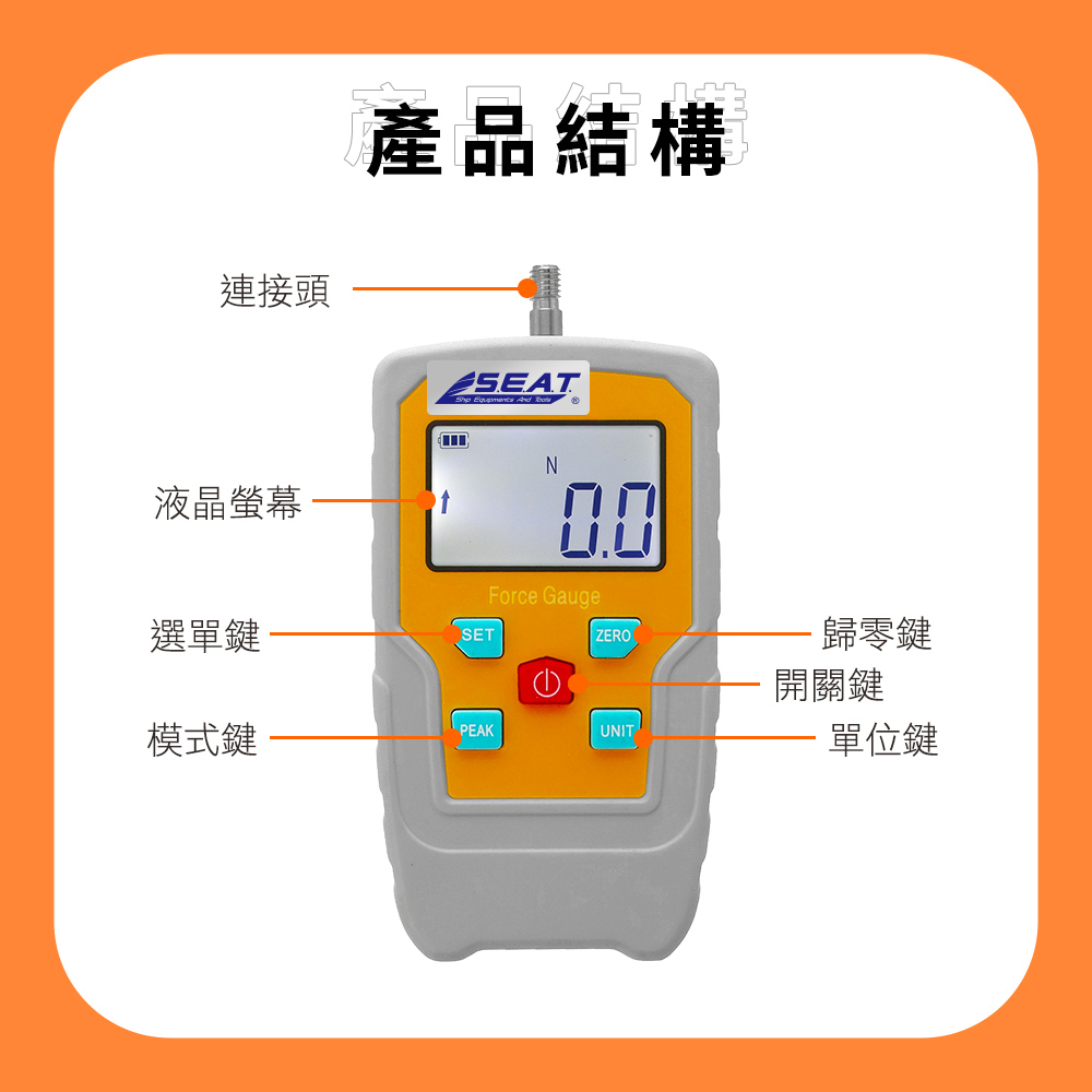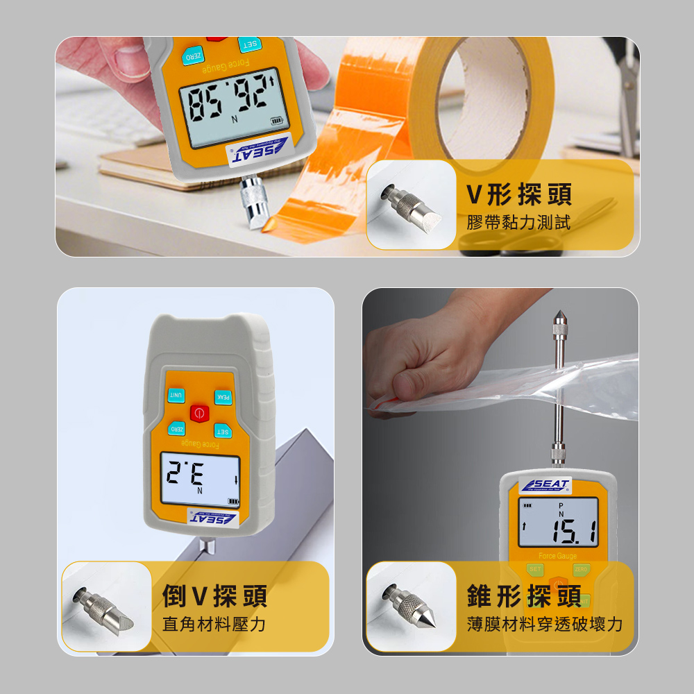 按鍵手感總是說不清楚?彈簧到底夠不夠力?用數位推拉力計,讓「感覺」變成精準數字。三種量測模式搭配四種單位,無論研發試作或產線品管都能快速比對標準。高亮背光螢幕,暗處依然清楚讀值;多款測頭與延長桿隨附,拉、推、頂、勾一次到位。從工廠到工作室,輕鬆掌握每一次推拉力量。