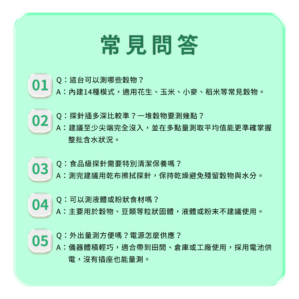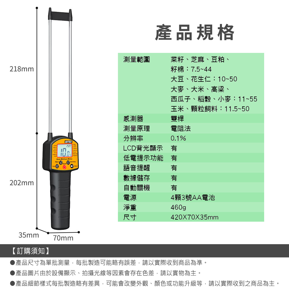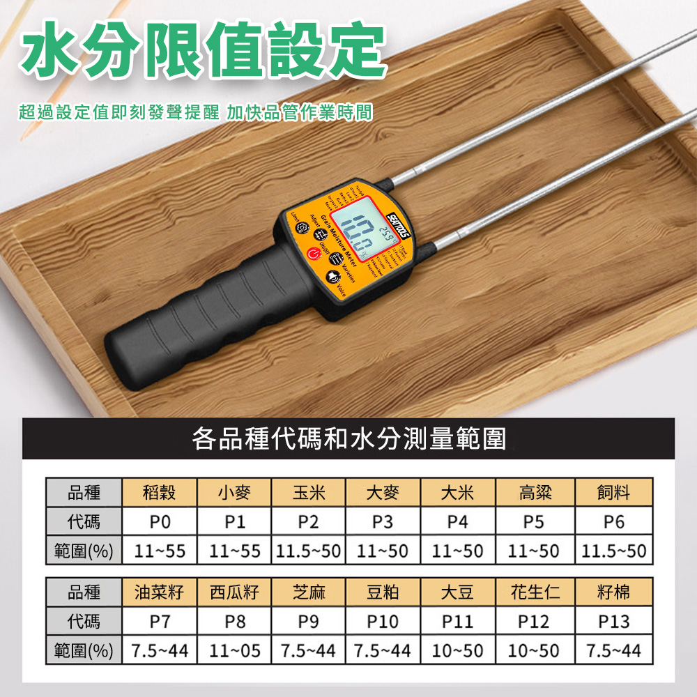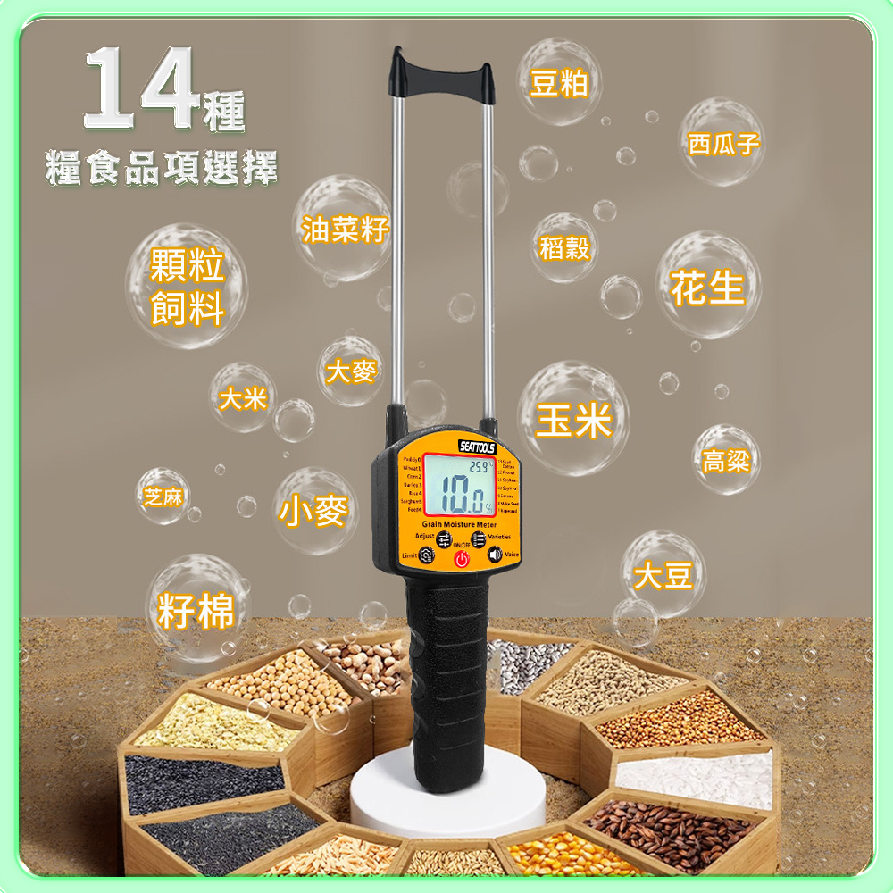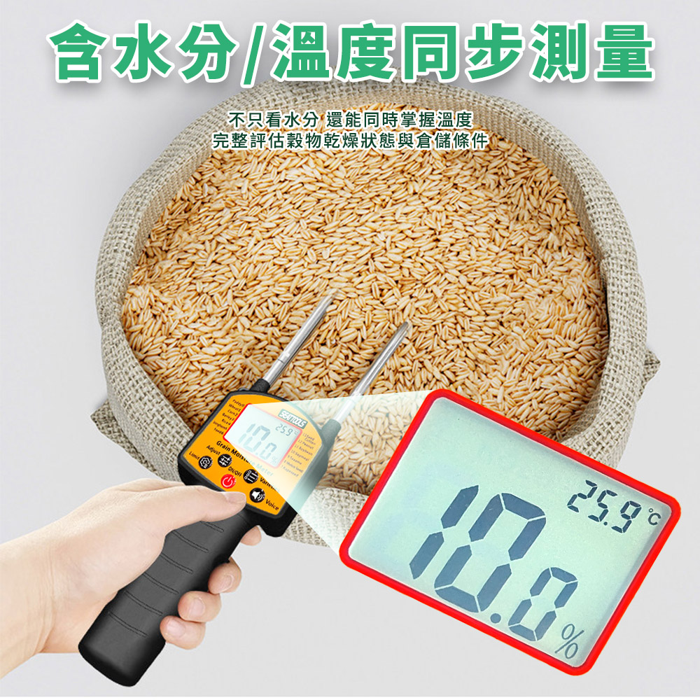 穀物到底乾了沒,只能靠手抓、咬一口猜?含水過高容易發霉、長蟲,賣相變差、庫存報廢,都是成本!食品級含水分計,專為花生、玉米、小麥等穀物設計,插入即測,溫濕度同步顯示,超標自動提醒,現場就能決定要不要再烘、再曬。大尺寸背光螢幕、數據保存功能,一人就能快速檢測一整批,從產地到倉儲都放心。