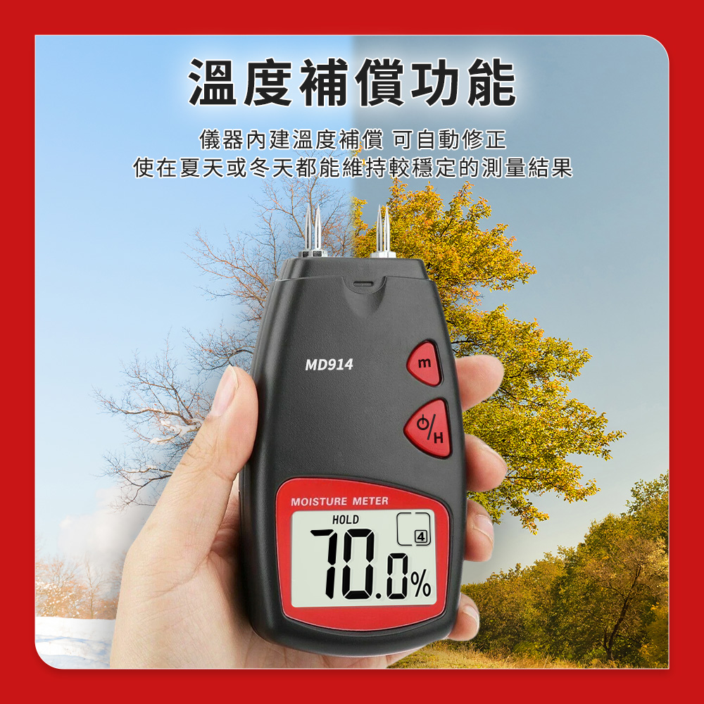 A4:環境溫度會影響電阻與含水讀值,儀器內建溫度補償,可自動修正,使在夏天或冬天都能維持較穩定的測量結果。