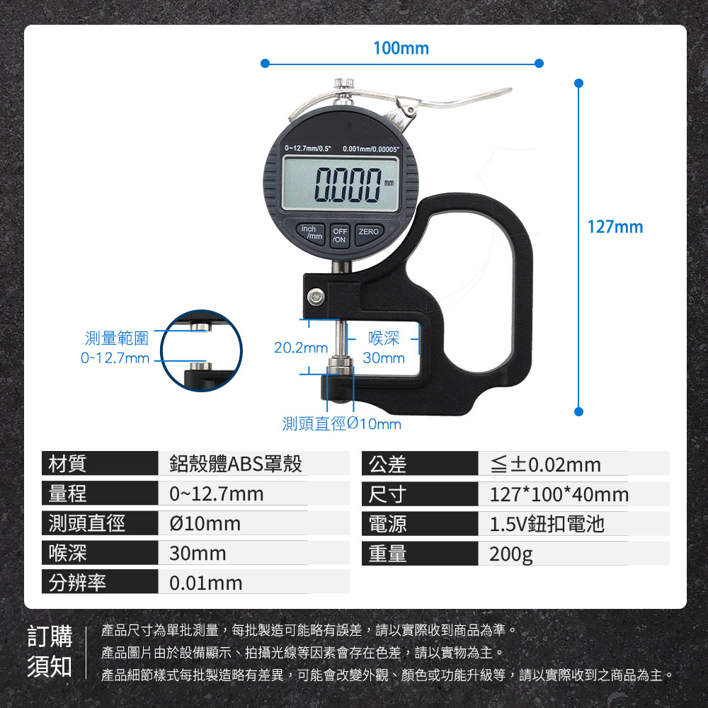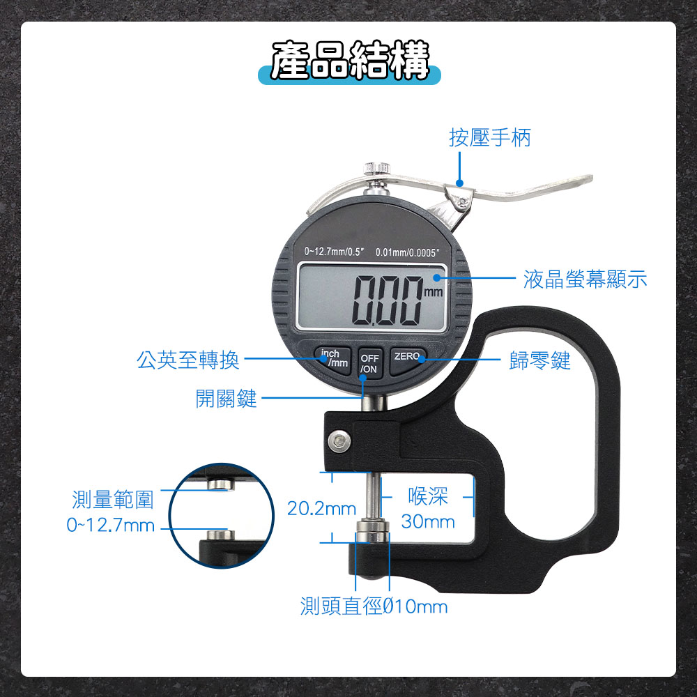 ✔量程0~12.7mm,精度高達0.01mm