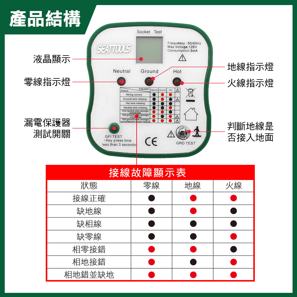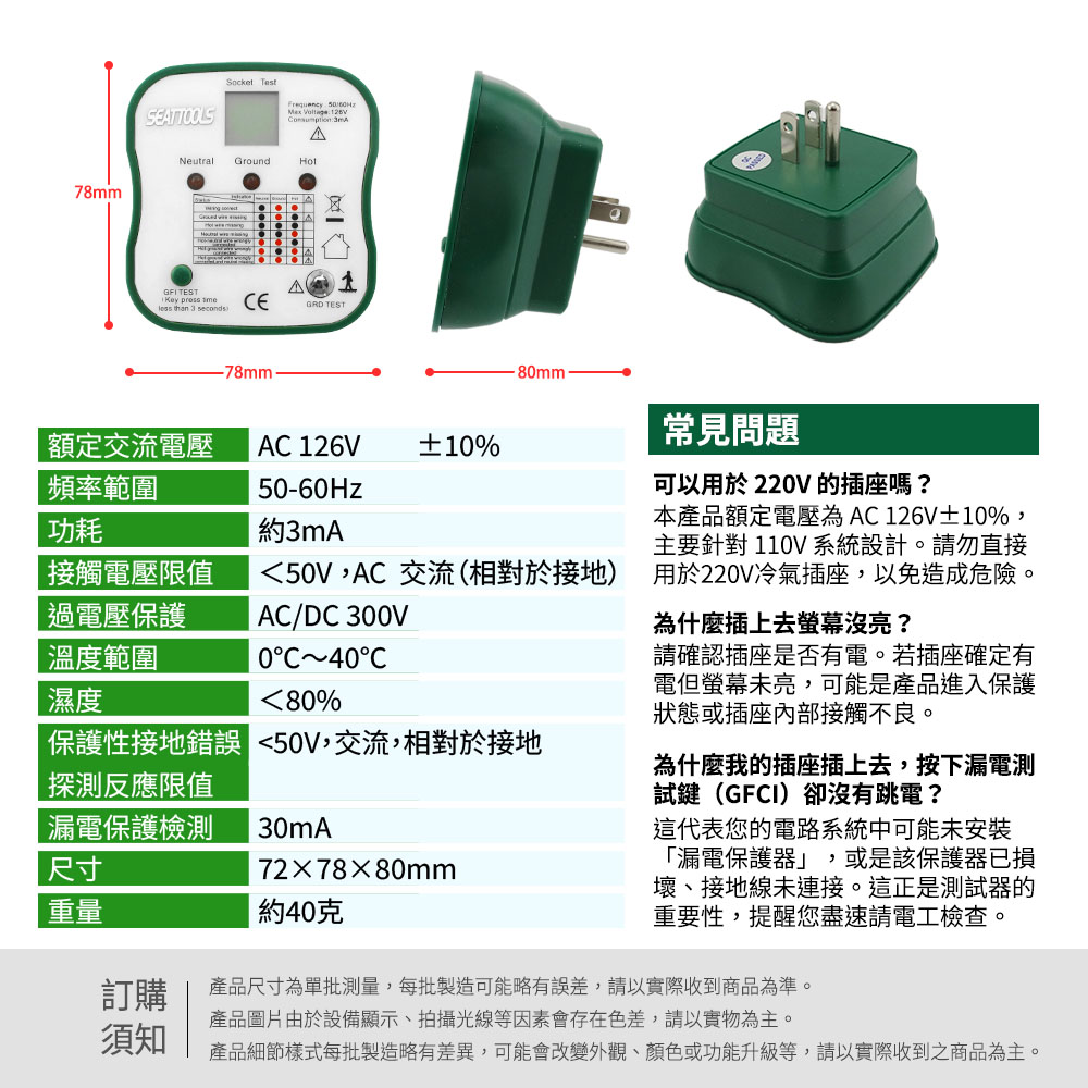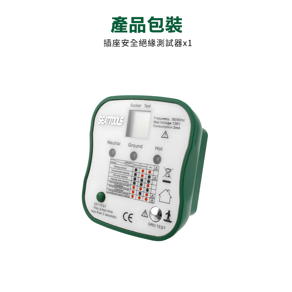 插座安全絕緣測試器(附液晶顯示幕及漏電跳脫功能)