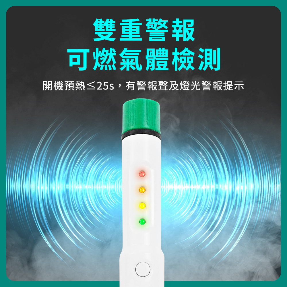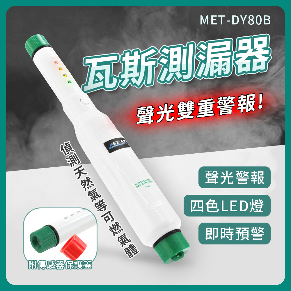 MET-DY80B 瓦斯測漏器專為天然氣、液化氣與加臭可燃氣體設計,內建高靈敏半導體感測器,開機預熱僅需25秒,即可即時偵測瓦斯洩漏。具備聲光雙重警報與四色LED指示燈,依氣體濃度分級警示。輕量筆型設計搭配防滑手柄,適用於廚房、瓦斯熱水器、化工現場與管線巡檢,讓安全檢測更簡單。