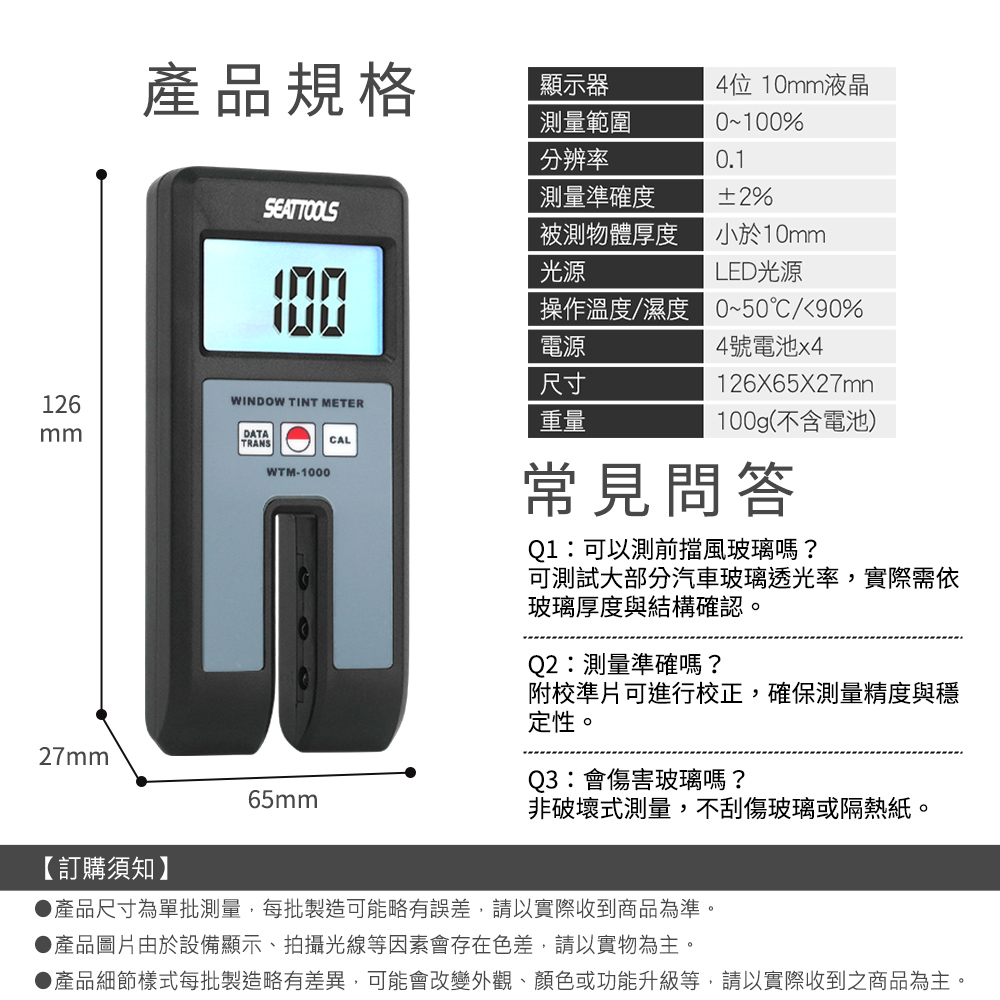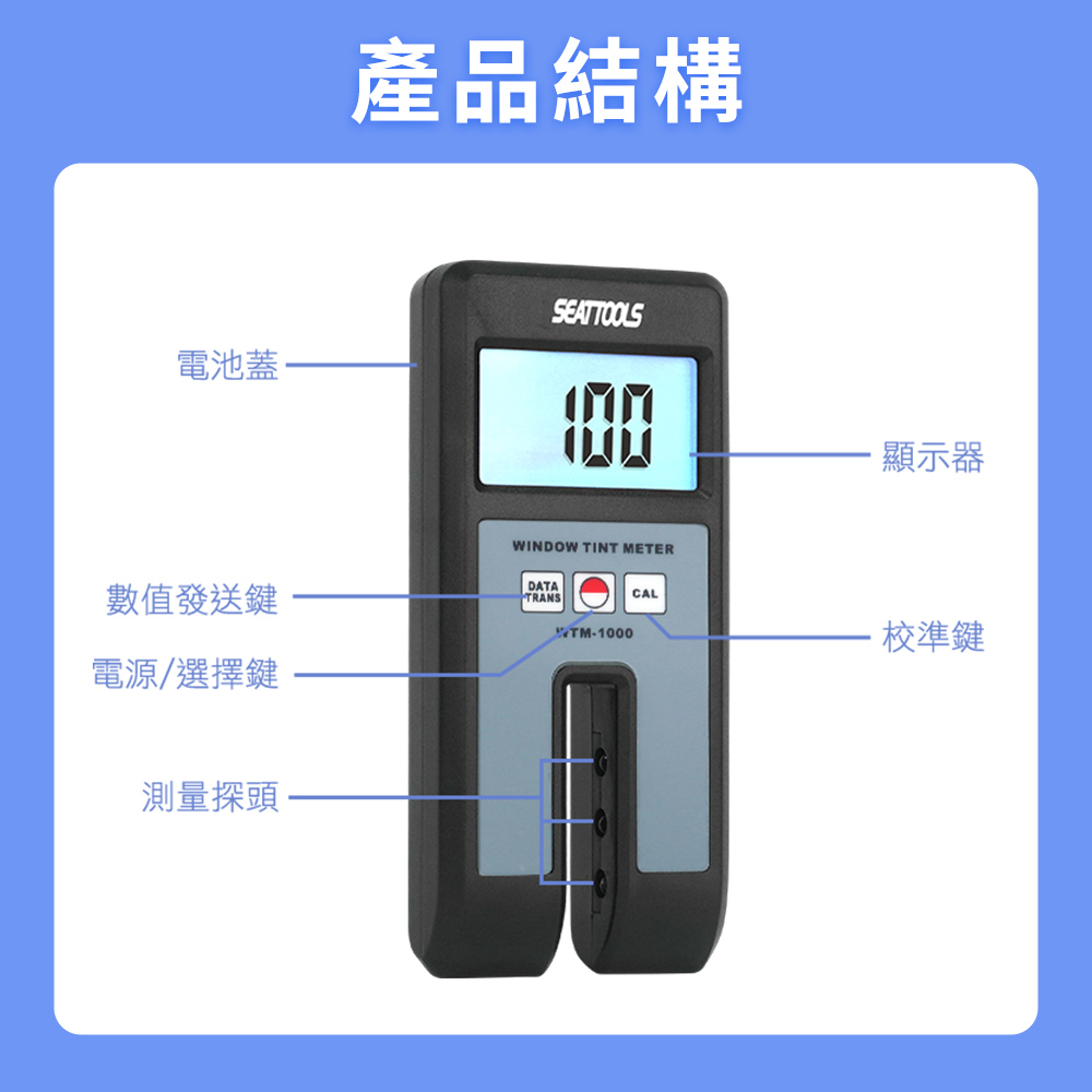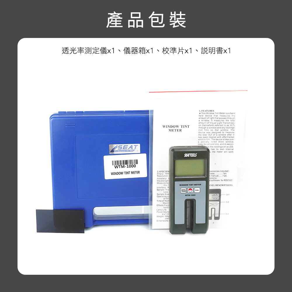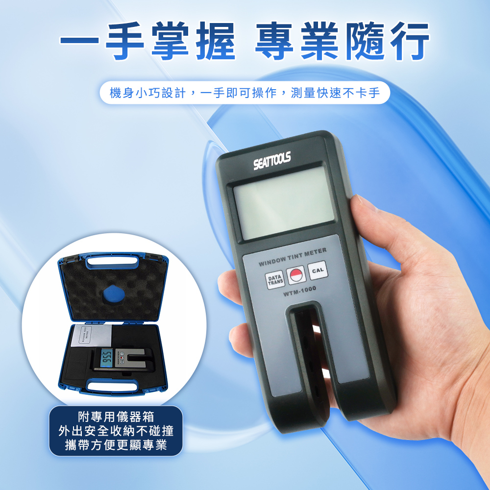貼膜後最怕什麼?驗車不過、被開罰單、客戶質疑數據不準。透光率測定儀,0–100%高精準測量,數位顯示清晰直讀,快速判斷玻璃透光率。內建背光螢幕,室內外皆可使用,附校準片與儀器箱,施工驗收更專業。讓貼膜施工不再靠感覺,用數據說話。