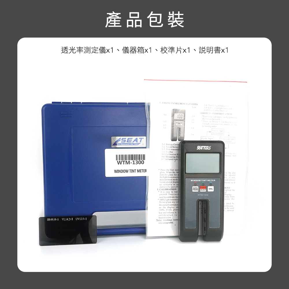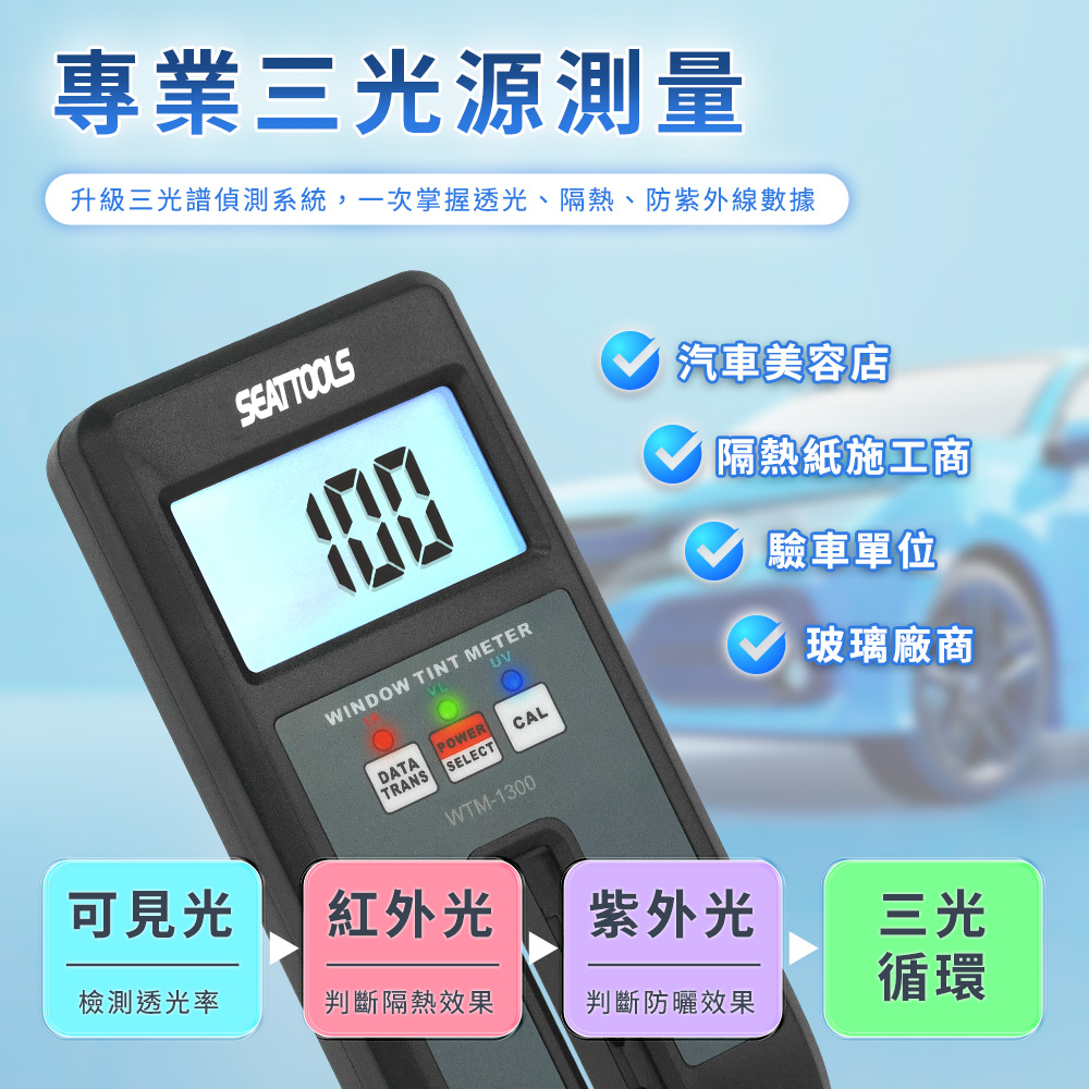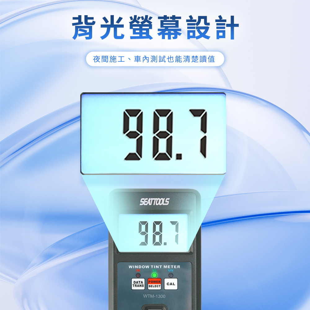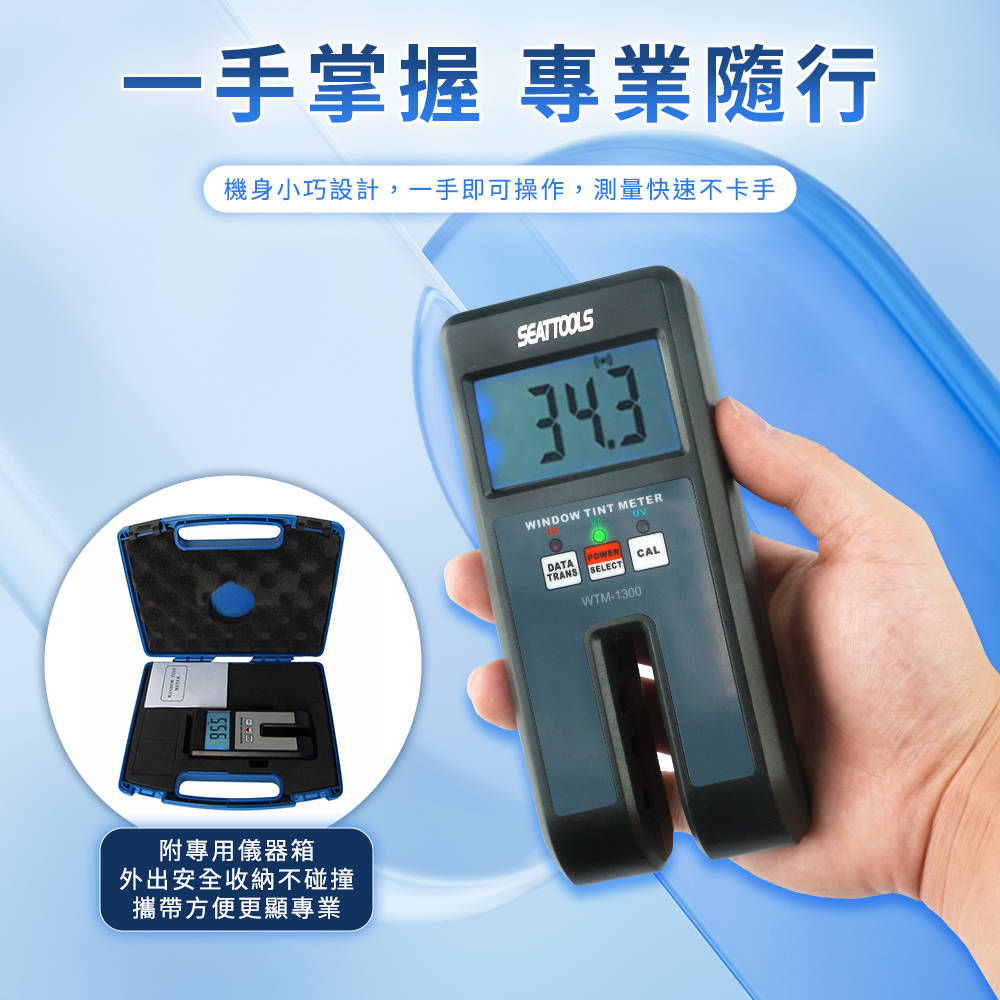 貼膜後最怕什麼?驗車不過、被開罰單、客戶質疑數據不準。透光率測定儀,0–100%高精準測量,數位顯示清晰直讀,快速判斷玻璃透光率。內建背光螢幕,室內外皆可使用,附校準片與儀器箱,施工驗收更專業。讓貼膜施工不再靠感覺,用數據說話。