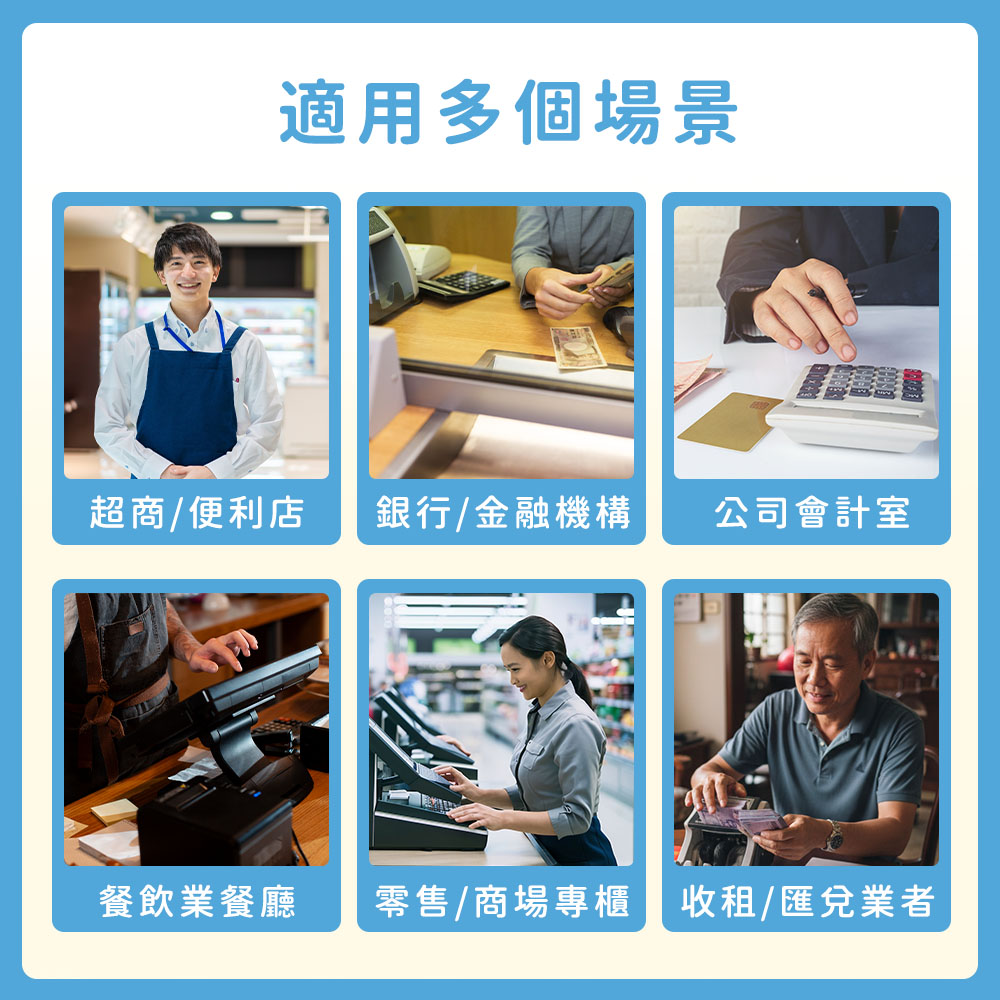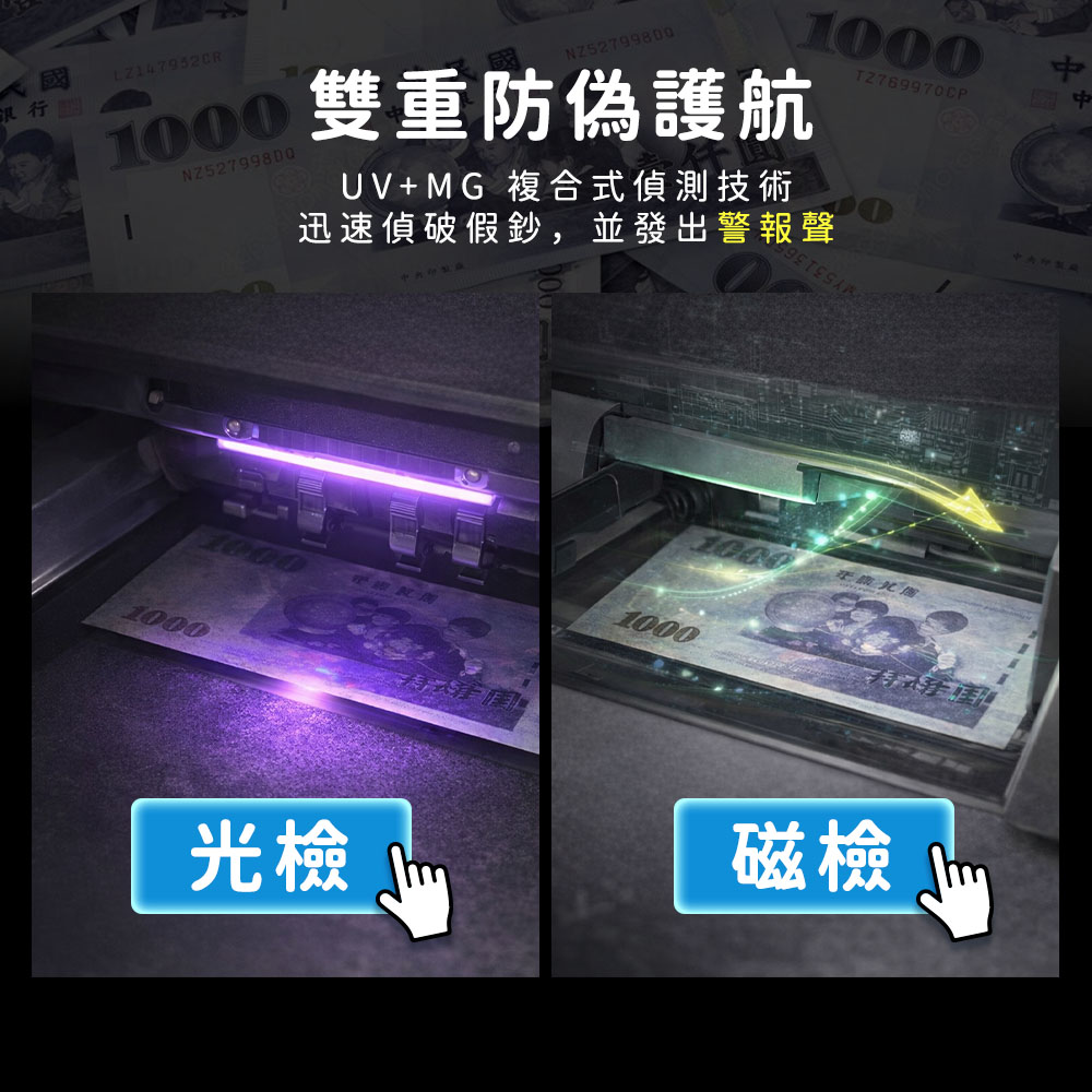 結帳尖峰最怕點鈔慢、算錯、還收到假鈔。MET-NTD1003 專為台幣設計,快速點鈔並以紫光偵測真偽,異常即警報提醒,降低收銀風險。支援累加計數、開機自檢與自動清零復位,搭配外接顯示器讓顧客也看得清楚,收銀效率與信任感一次拉滿。