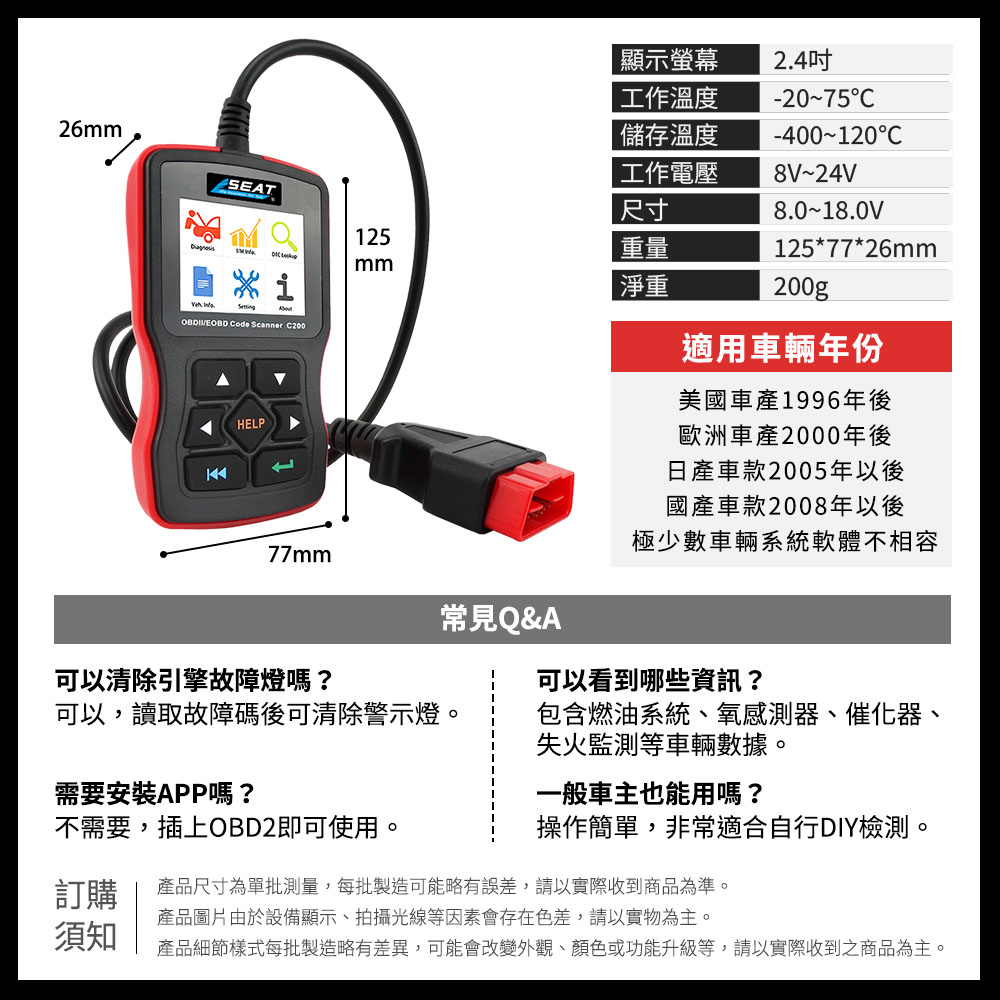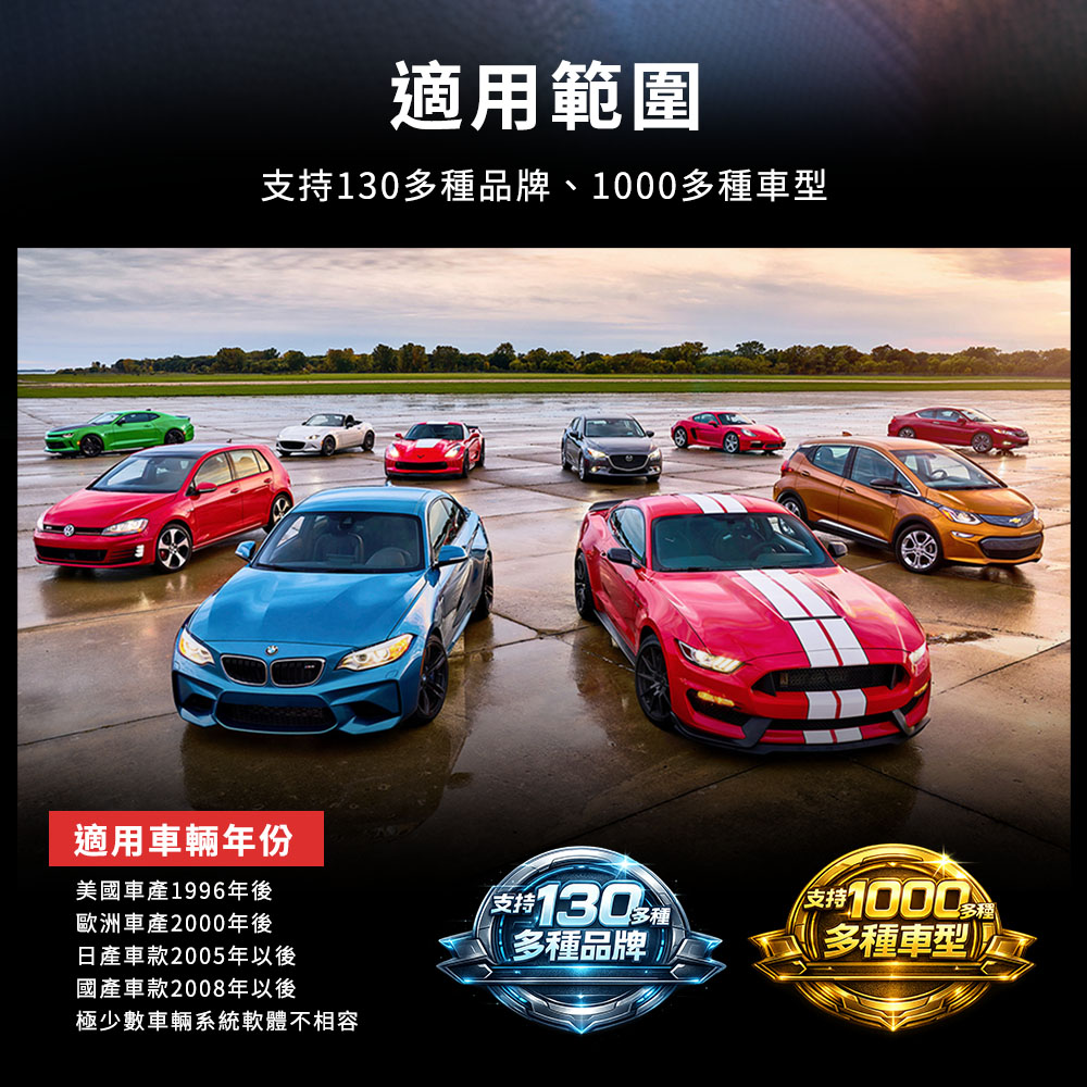 適用車輛年份:美國車產1996年後、歐洲車產2000年後、日產車款2005年以後、國產車款2008年以後,極少數車輛系統軟體不相容。