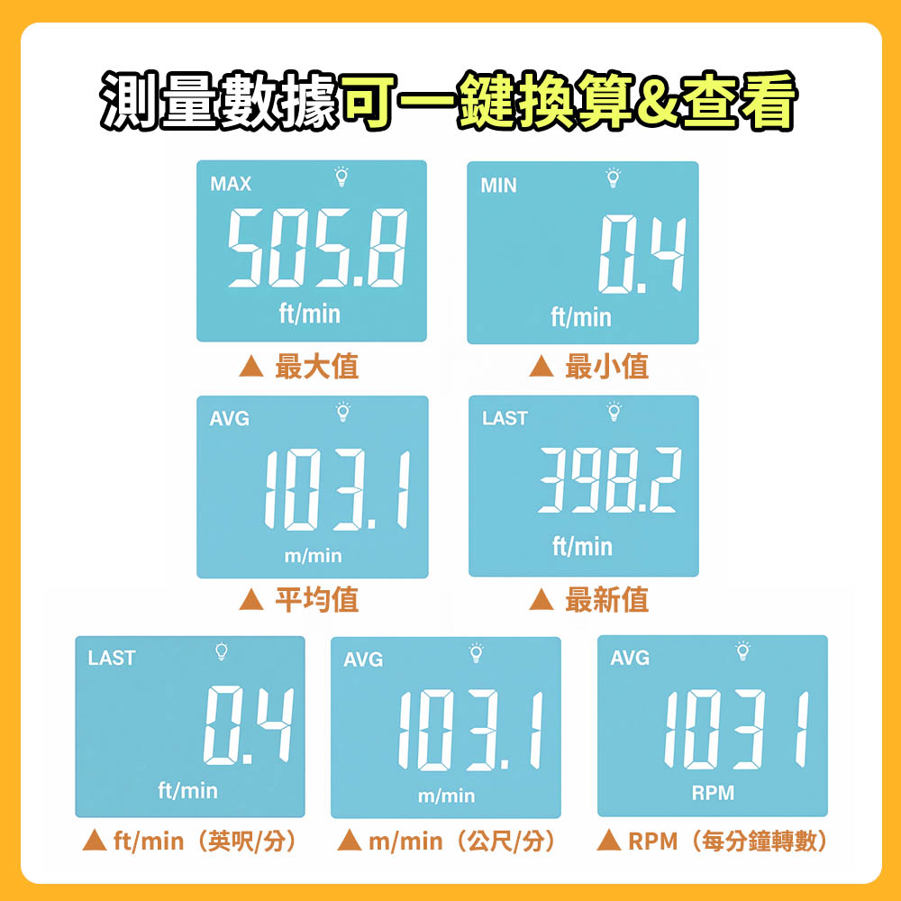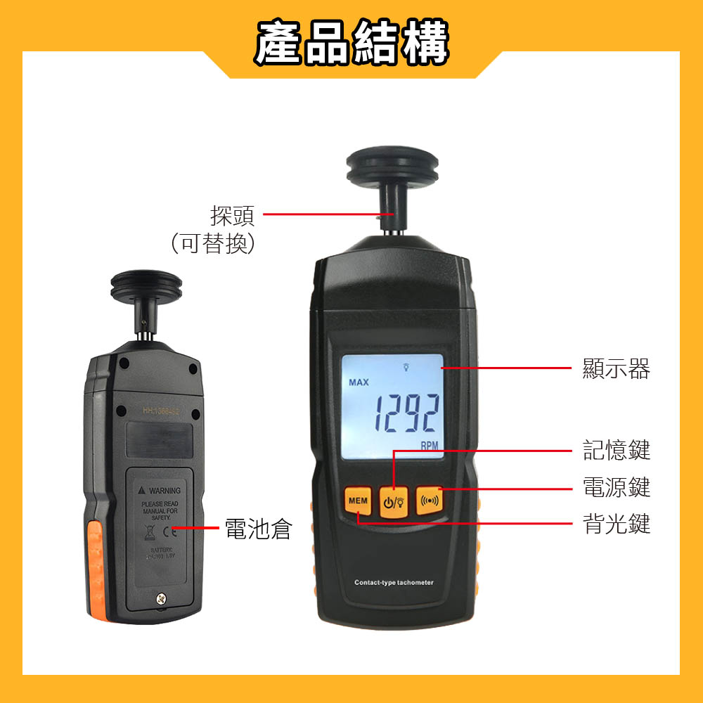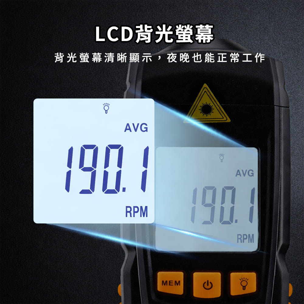 ☑ 高畫質LCD背光顯示轉速頭