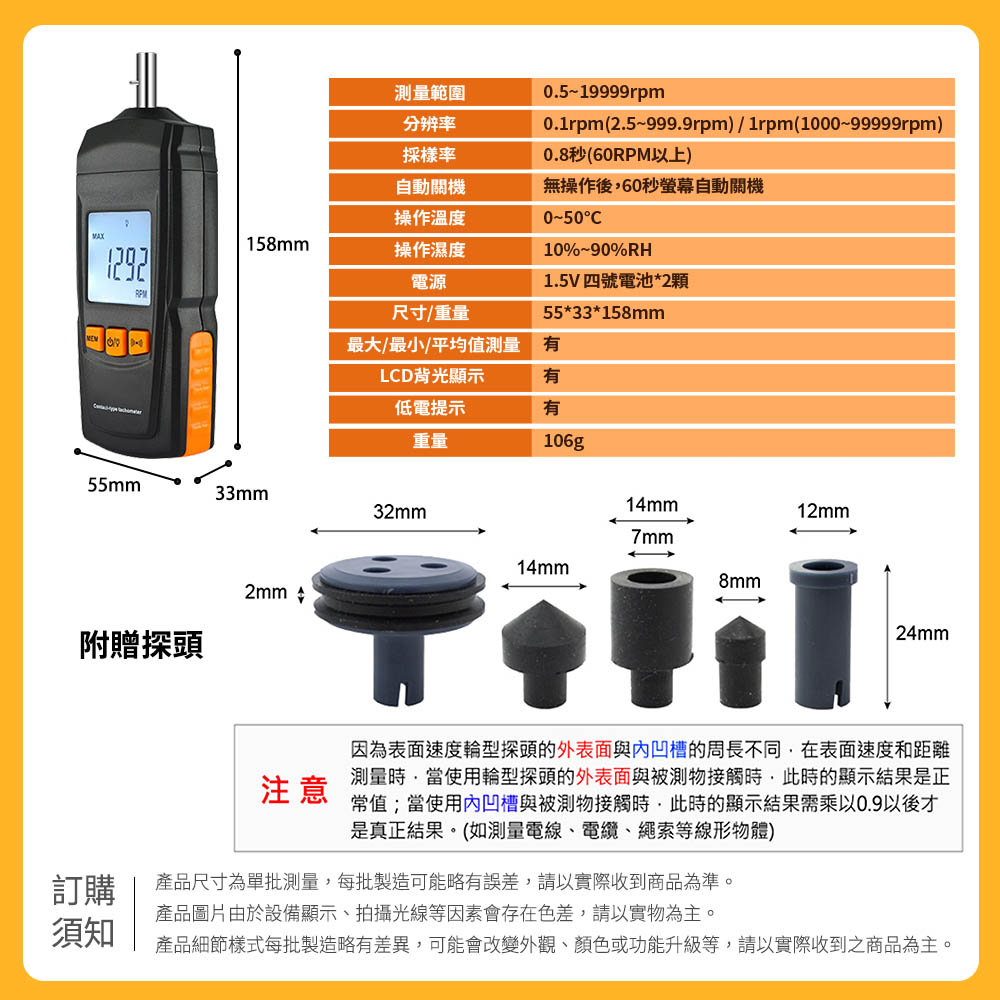 測量範圍:0.5~19999rpm