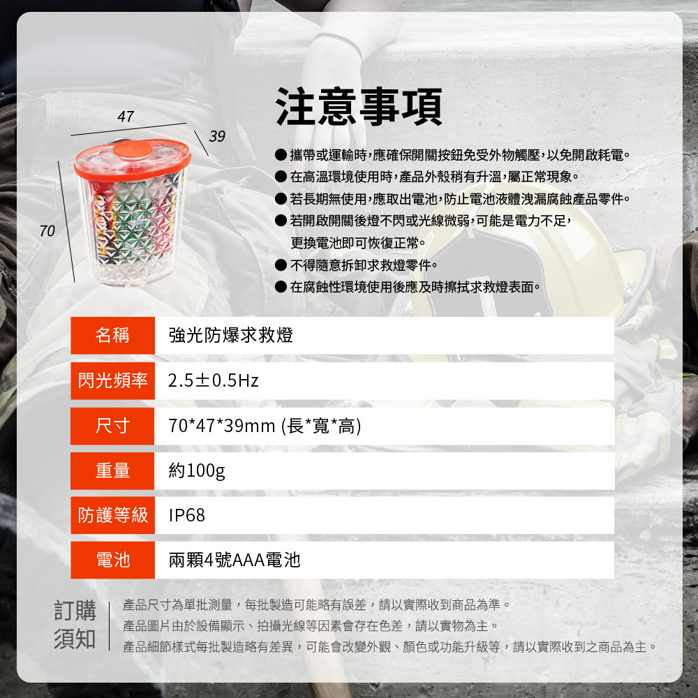 求救燈用在需要照明或信號燈需求,假如受困需要救援,清晰的燈光可以更快讓搜救隊發現目標。外殼採用精選材料,無論水下、腐蝕性環境、易燃易爆炸區域,求救燈都能正常運作。