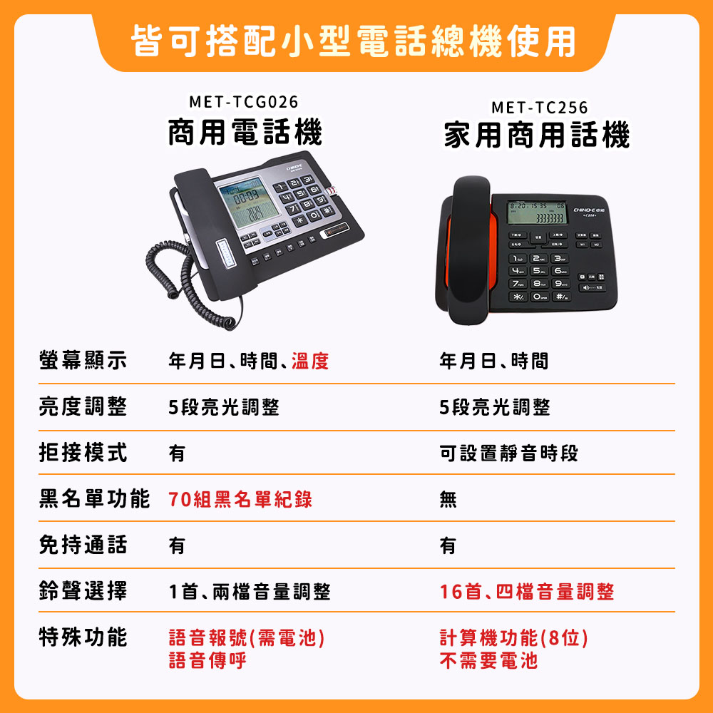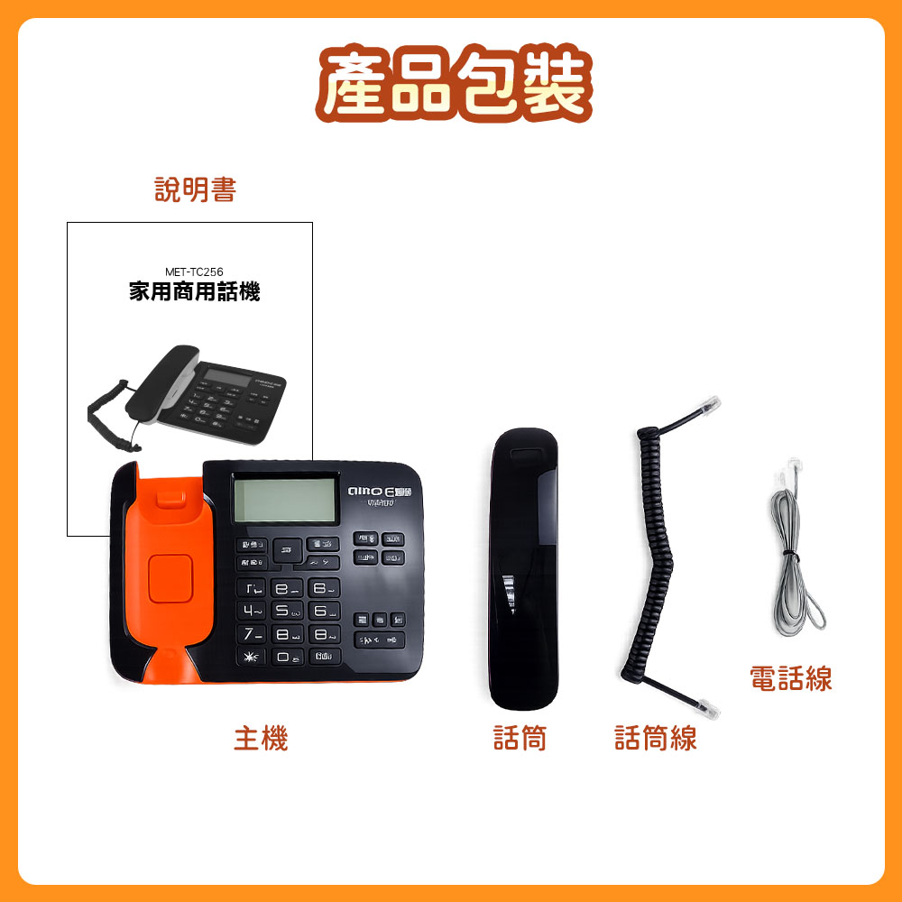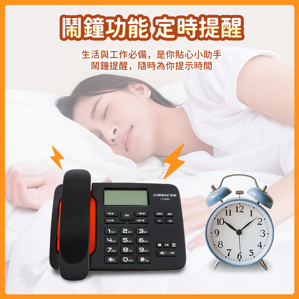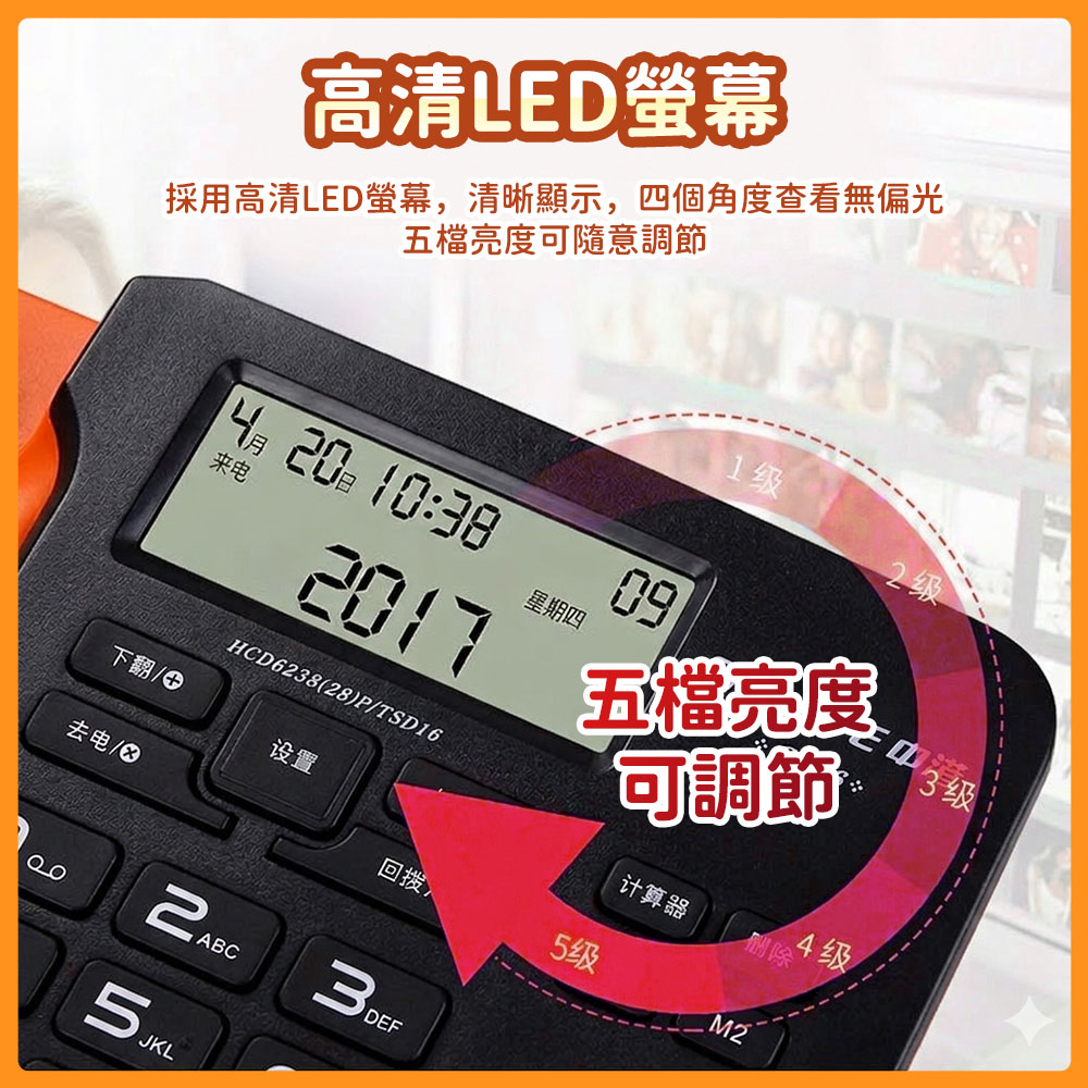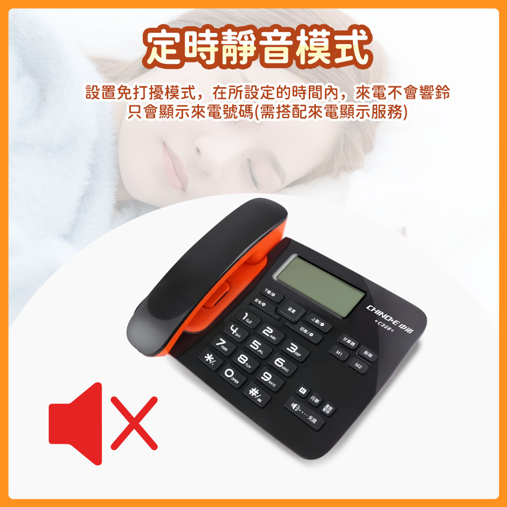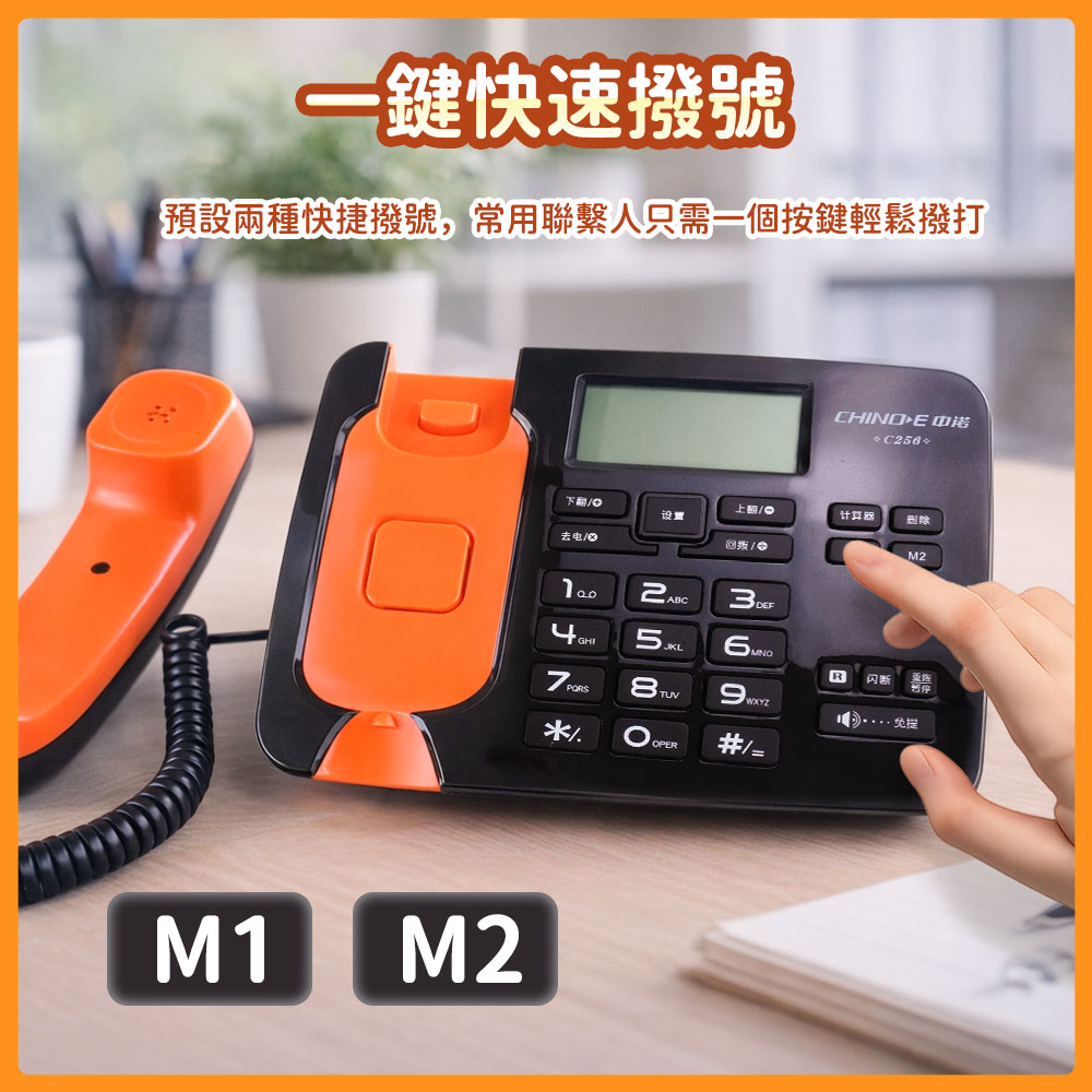 可互打分機號碼,與接聽保留功能,方便又快速,機身採用ABS材質,舒適質感、大按鍵且耐磨清晰,擁有大容量儲存,16首鈴聲選擇且有鬧鐘功能。