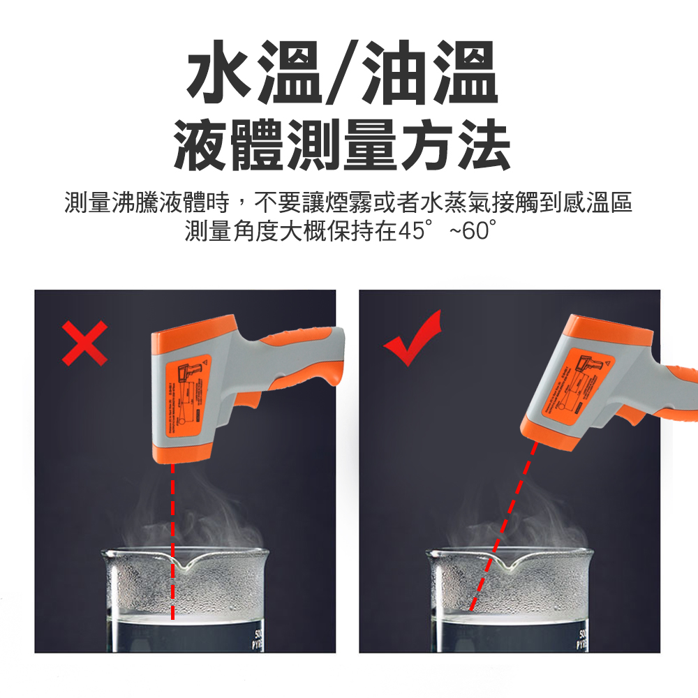 食品加工/烹飪:快速測量烤箱、烤架或食物表面溫度。