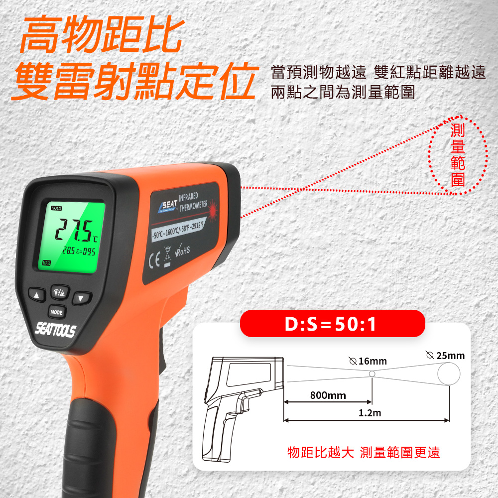產品名稱:MET-TG1600_工業級測溫槍(-50~1600度)