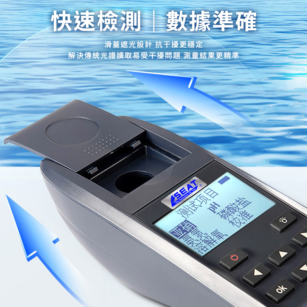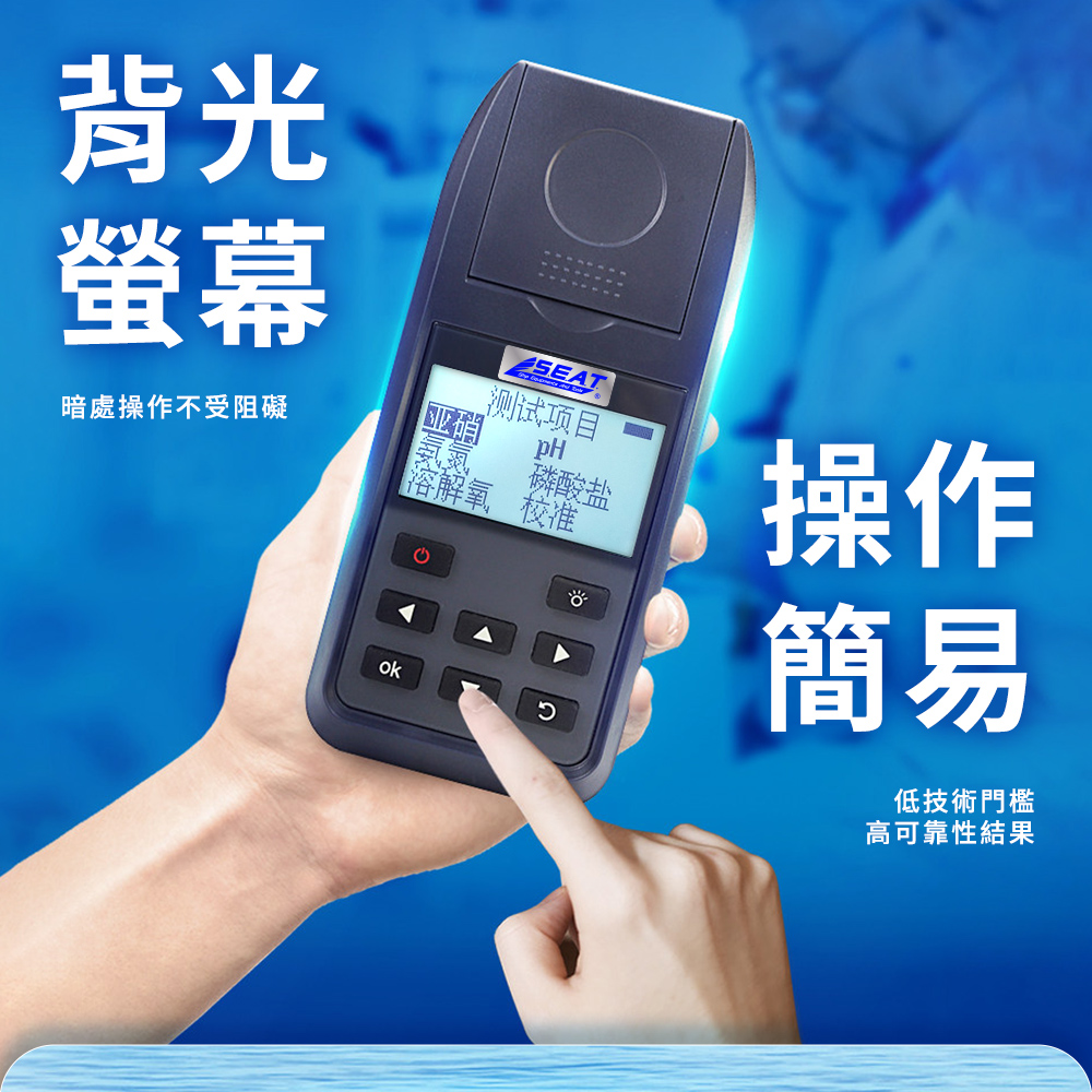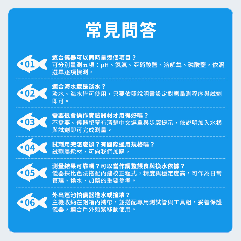 魚蝦一直暴斃,換水加藥還是找不到原因?五合一水產養殖水質檢測儀,把pH、氨氮、亞硝酸鹽、溶解氧、磷酸鹽通通量給你。內建程式引導與試劑比色模式,一支主機取代多罐試紙,比肉眼對色準確,也比送驗快速。淡水、海水皆可用,讓魚塭、水族缸、養蝦池每天都在安全範圍內運轉。