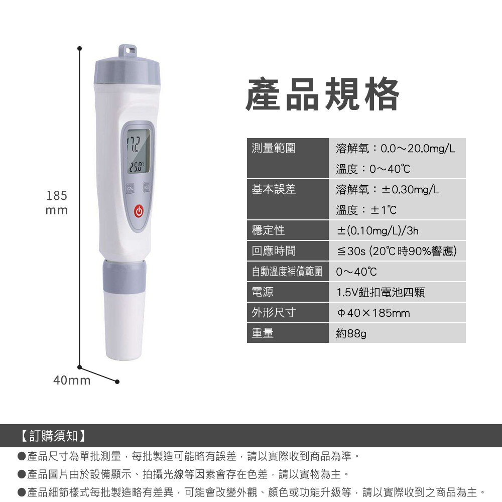 測量範圍:溶解氧:0.0~20.0mg/L 溫度:0~40℃
