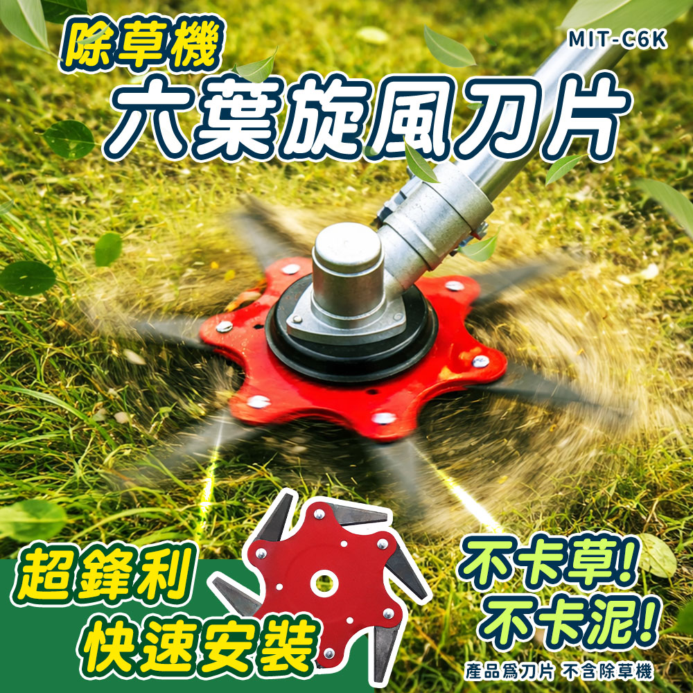 除草時最怕刀片卡草、卡泥,效率低又浪費時間。MIT-C6K 六葉旋風刀片採用多刃鋒利設計,高速旋轉形成強力切割力,密集雜草也能快速清除。鋒利耐用、不易卡草不卡泥,適用農地、庭院、果園及空地整理。安裝快速、操作穩定,大幅提升除草效率,是除草機升級必備配件。