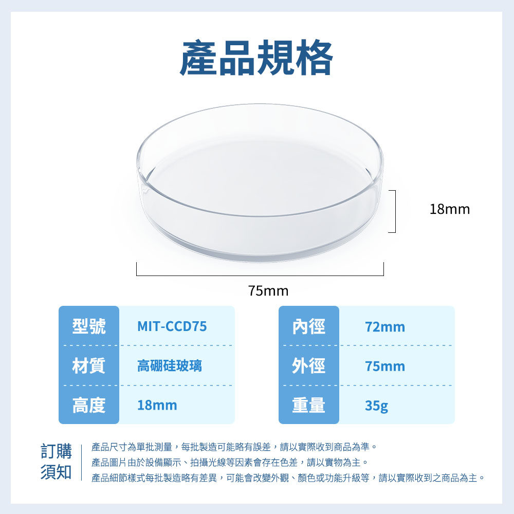 MIT-CCD75_玻璃細胞培養皿(75mm)