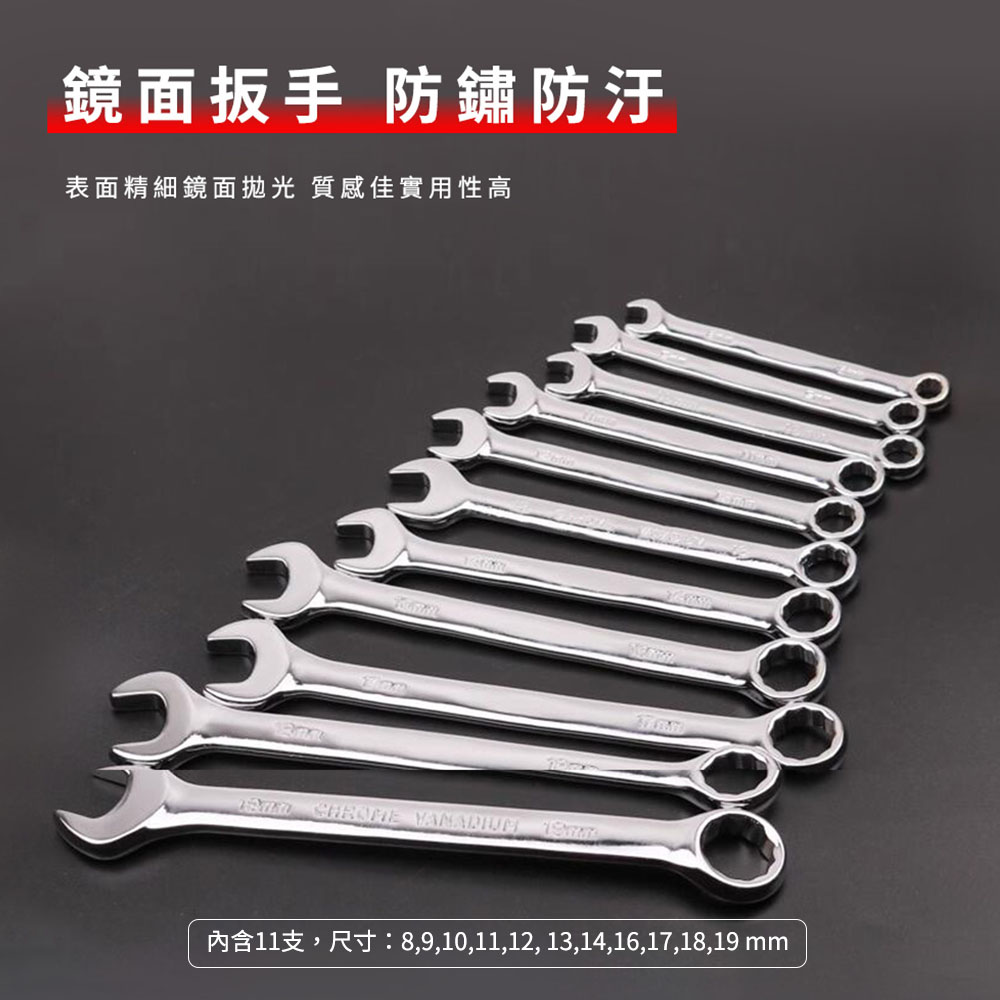 全拋光兩用扳手:8,9,10,11,12,13,14,16,17,18,19,MM