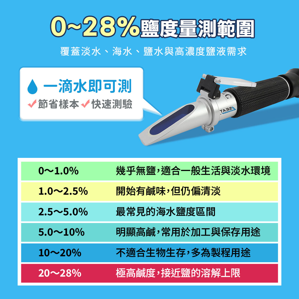 調味靠感覺,品質卻要靠數據。MIT-FSM28 手持式鹽度計,快速量測 0–28% 鹽度濃度,一滴水即可判斷鹹淡是否合格。操作簡單、讀值清楚、攜帶方便,讓你告別反覆試味與誤判風險,每一次測量都更精準、更安心。