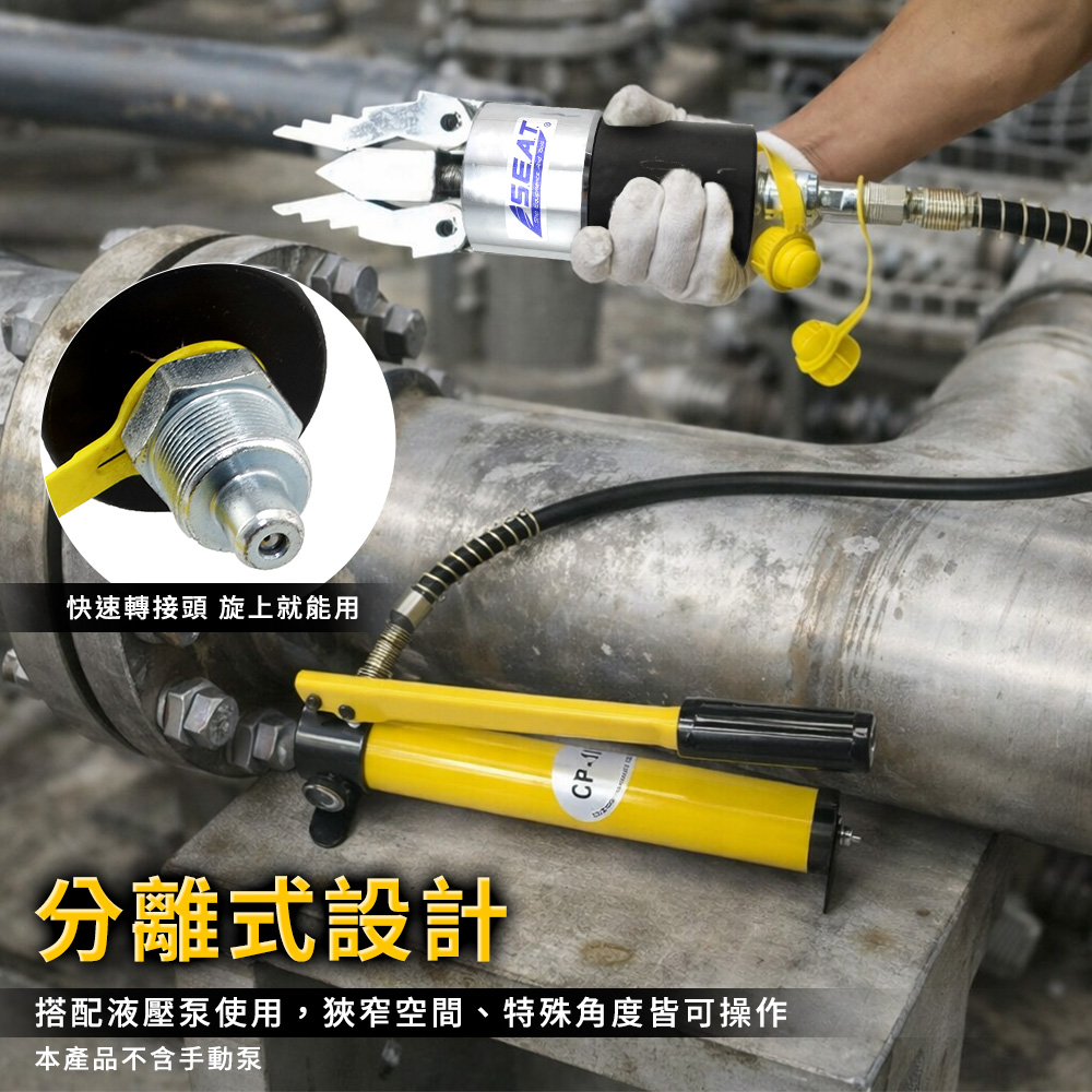 - 分離式設計,搭配液壓泵使用,狹窄空間、特殊角度皆可操作。