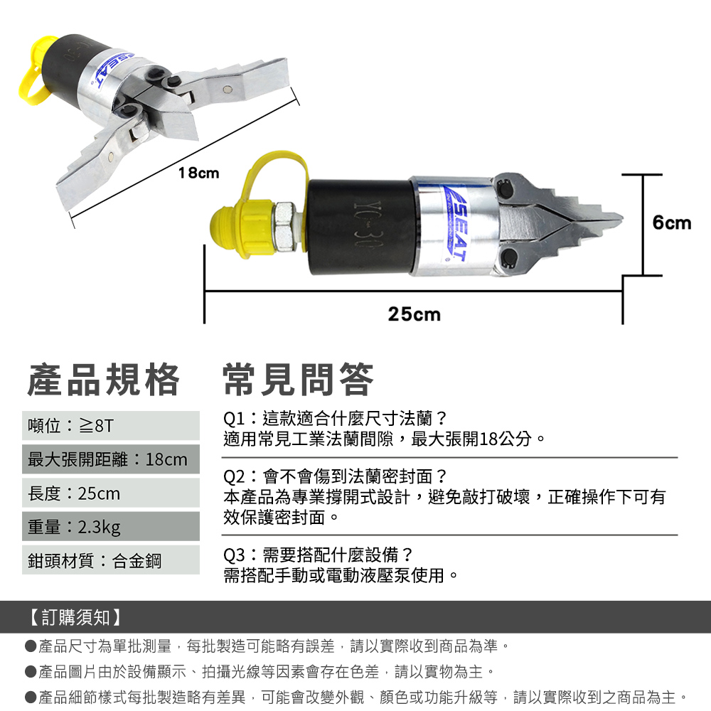 - 8噸液壓輸出力,輕鬆撐開鏽蝕或卡死法蘭,降低人力負擔。