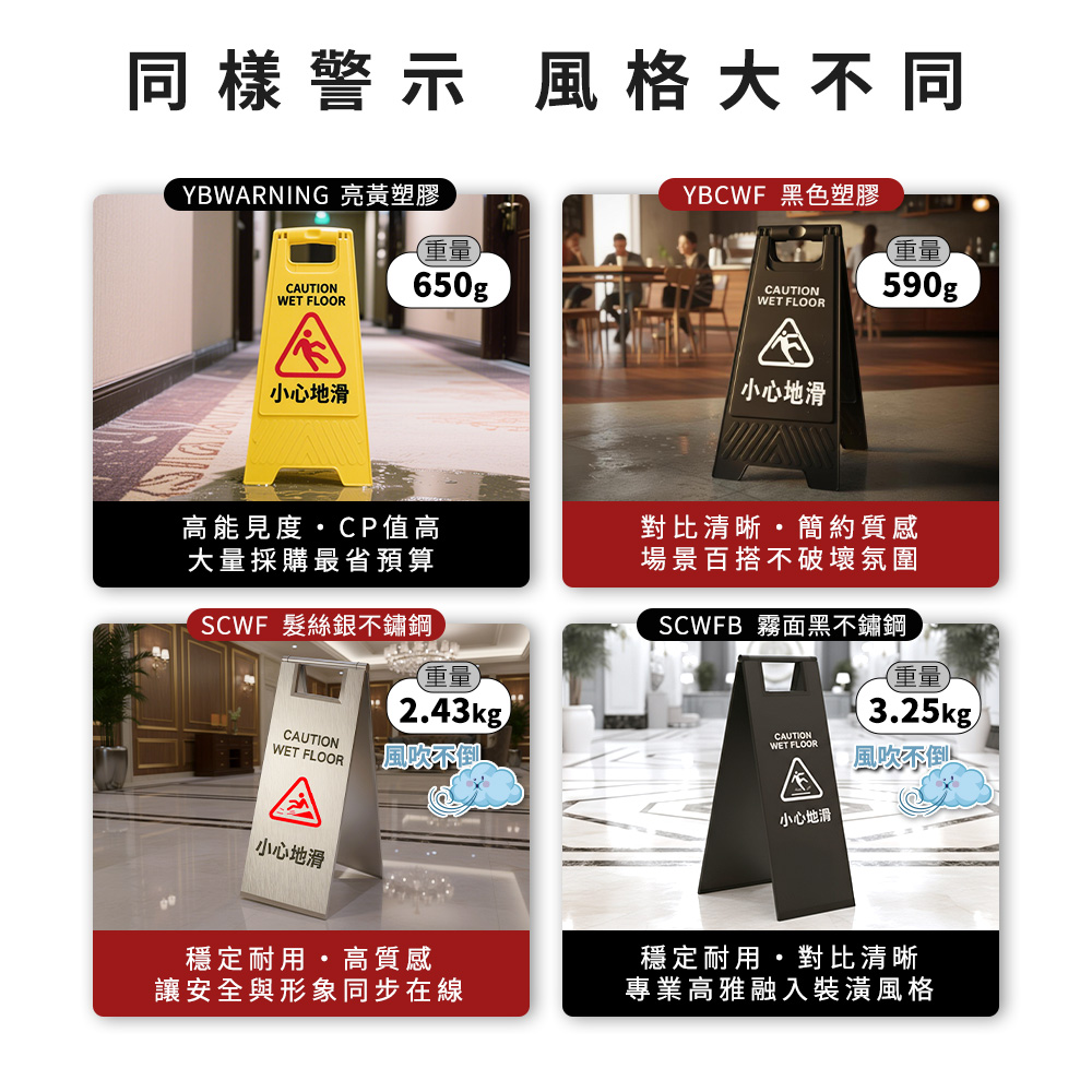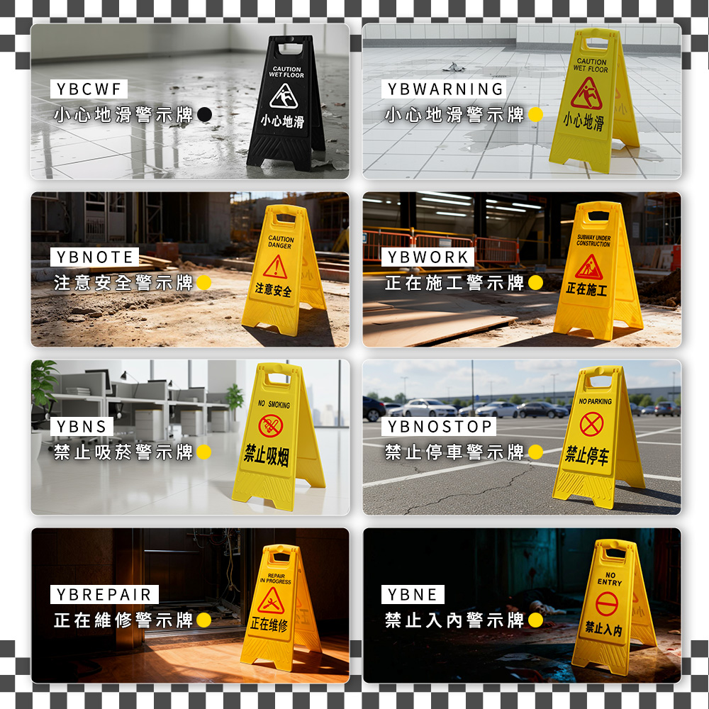 - 多種款式:除了「小心地滑」,還提供「正在維修」、「禁止入內」、「注意安全」等多種款式選擇。