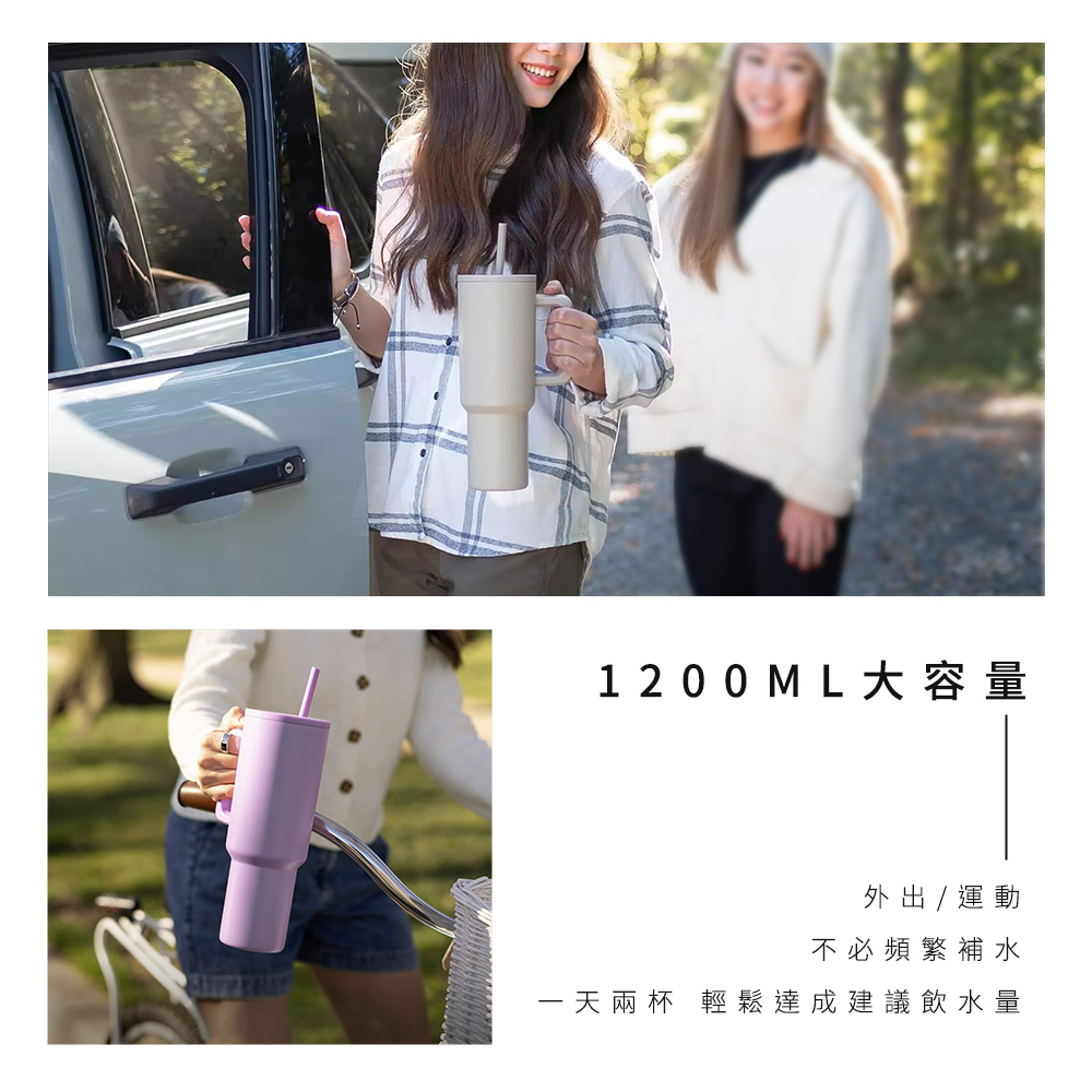本款 304 不鏽鋼真空保溫杯,實測保溫效果可達 12 小時,讓你從晨間咖啡到午後冰茶都能維持理想溫度。大容量 1200ML,雙層真空隔熱、防漏矽膠圈與加厚杯蓋,完美兼顧漏水防溢與持久保溫。極簡霧面外型搭配人體工學手柄,無論是辦公、健身、露營、通勤,一手單手拿取都輕鬆自在。