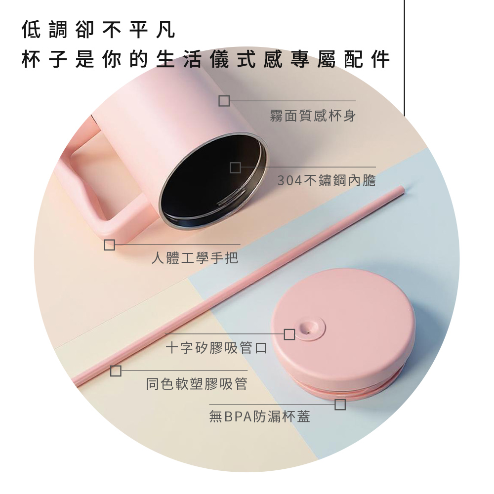 ‒ 杯身採用 304 不鏽鋼,耐腐蝕、抗鏽蝕;外層霧面烤漆,低調卻不失質感。