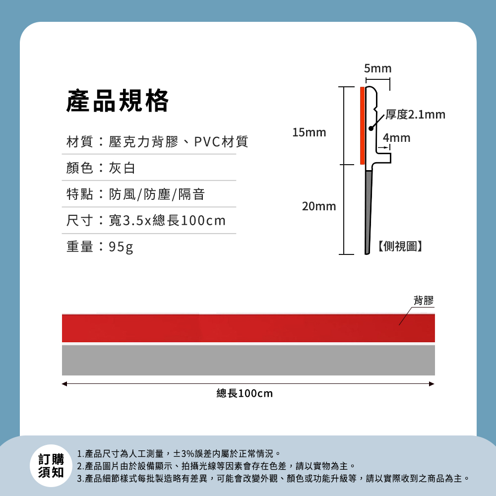 產品特點:防風/防塵/隔音 產品尺寸:寬3.5x總長100cm