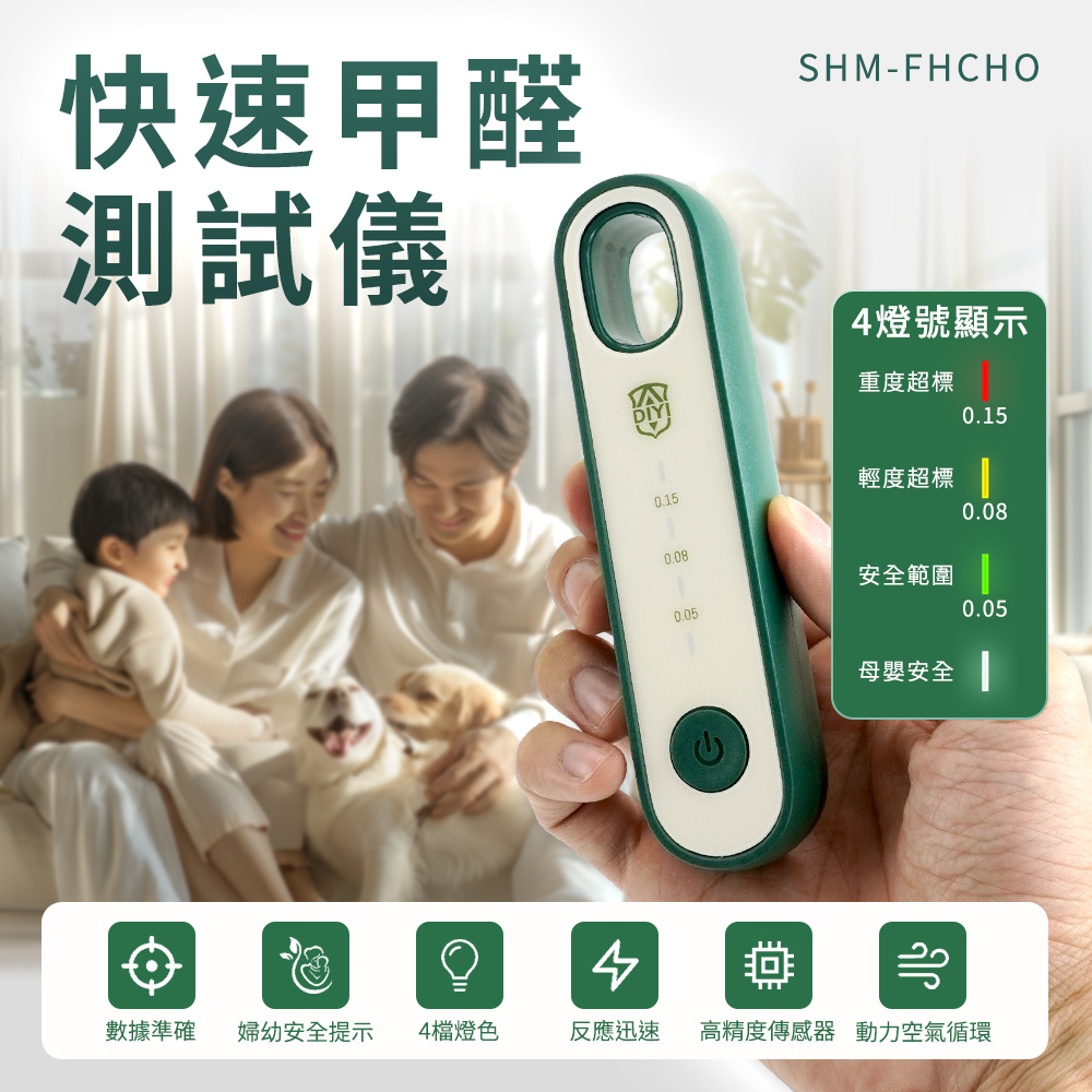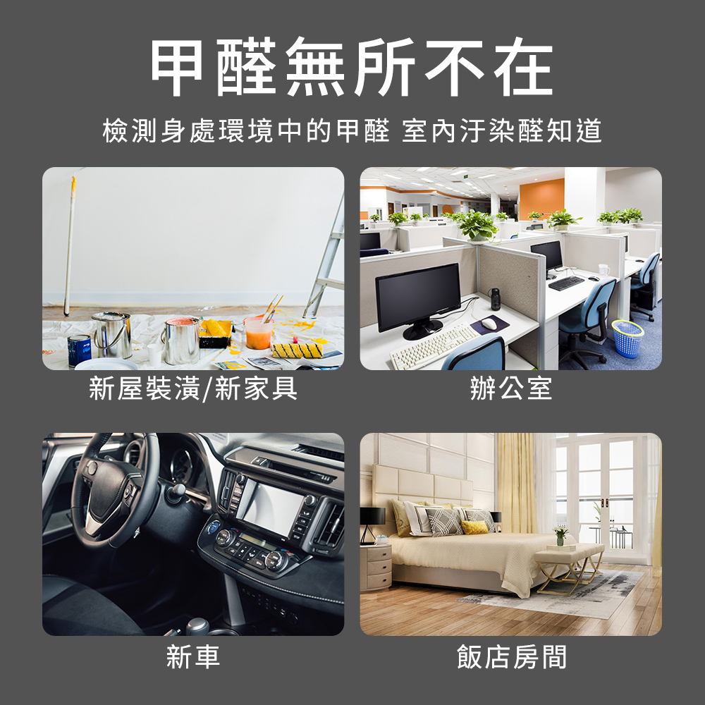 可偵測低至0.05mg/m³的甲醛濃度,符合母嬰入住安全標準,無論是新屋裝潢、購車驗屋或家具檢測都能快速掌握環境安全,遠離隱形污染威脅。