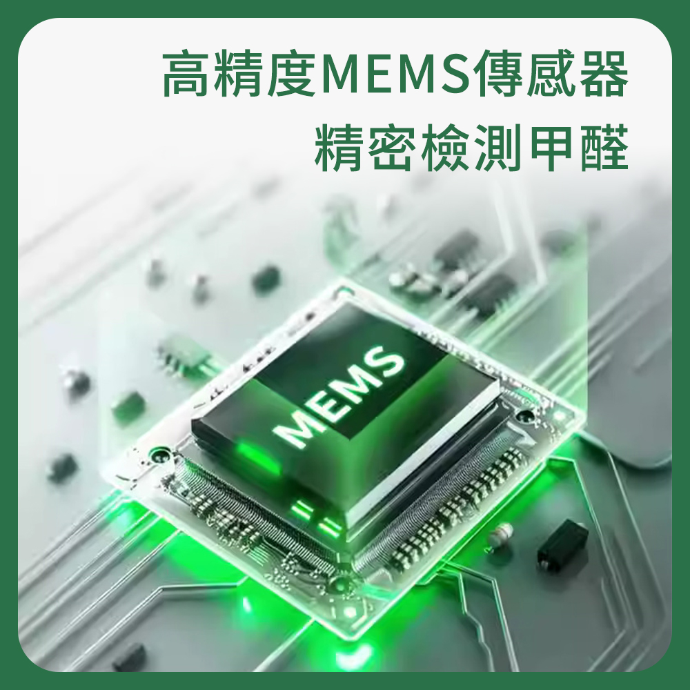 • 高精度MEMS感測器:靈敏度高、反應快速,準確捕捉甲醛變化。
