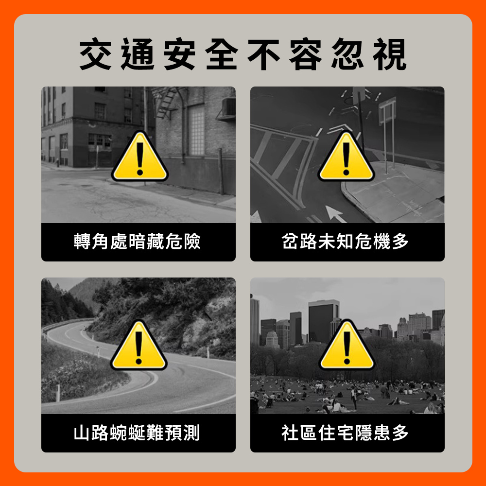 交通路口:T字路口、巷口、視線受阻的轉角,提醒來往車輛。