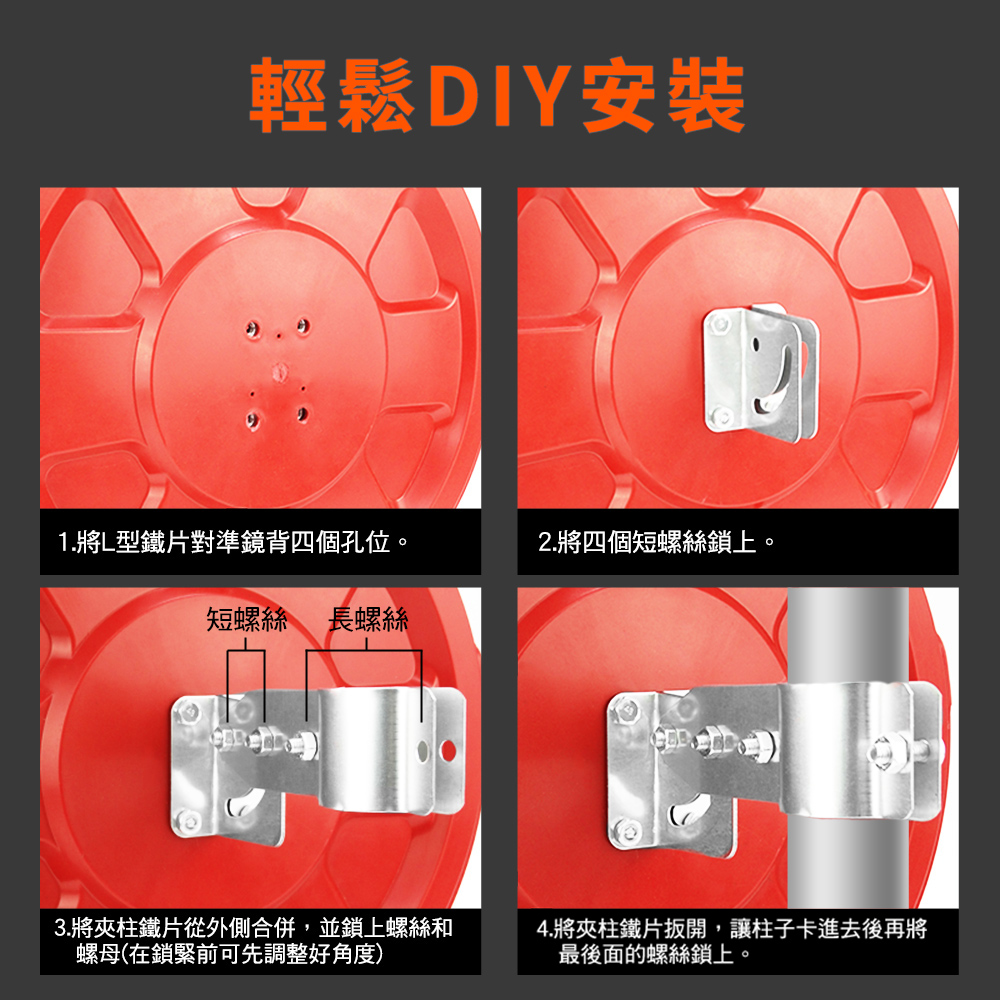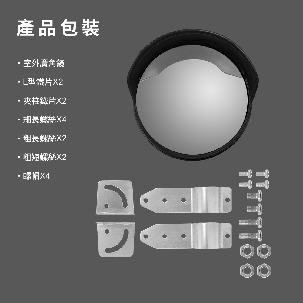空間隱藏許多死角,不僅能留意自身安全,也能留意目前環境狀況。廣角鏡外殼採用ABS材質,具有耐高溫、防水、抗老化等優勢,鏡片採用全新PC材質一體成型,230度超廣視野清楚看見不同視角,且受壓會自動恢復,不易損壞。不同尺寸大小供選擇,皆附有安裝配件。