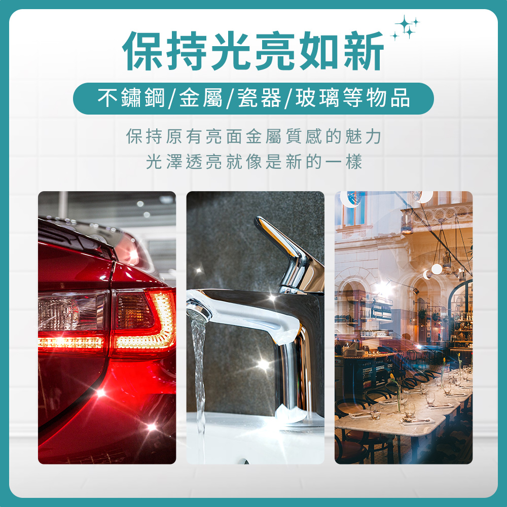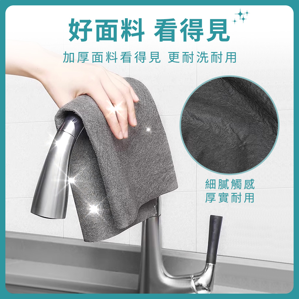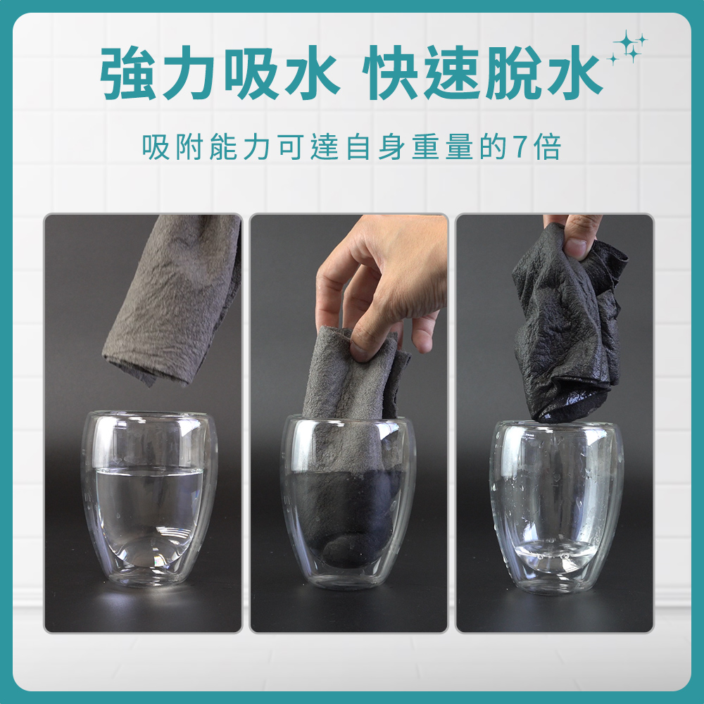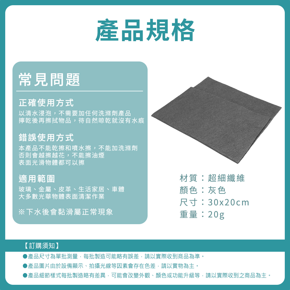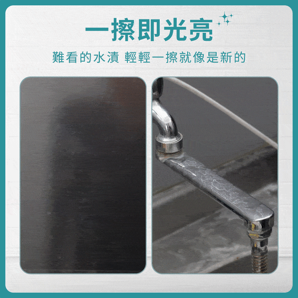 雖然外型不起眼,但卻有令人驚豔的潔淨力,生活中殘留在玻璃杯、餐具、冰箱、流理臺、門窗等,原本該是光澤透亮的亮面卻卡上一層難看的水漬、水垢,有了無水印魔力布,讓您一擦即亮,還給您原有光澤透亮的生活。