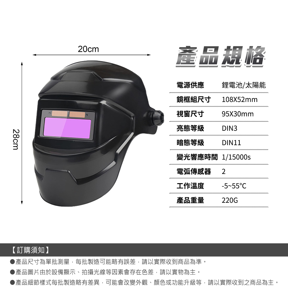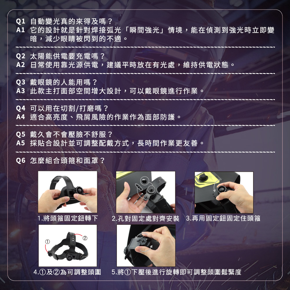 -自動變光,弧光來襲即變暗,降低閃眼與不適。