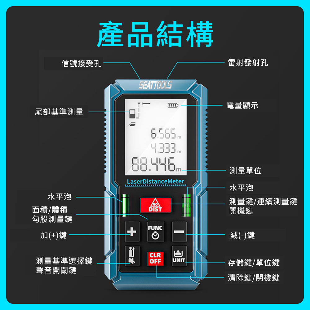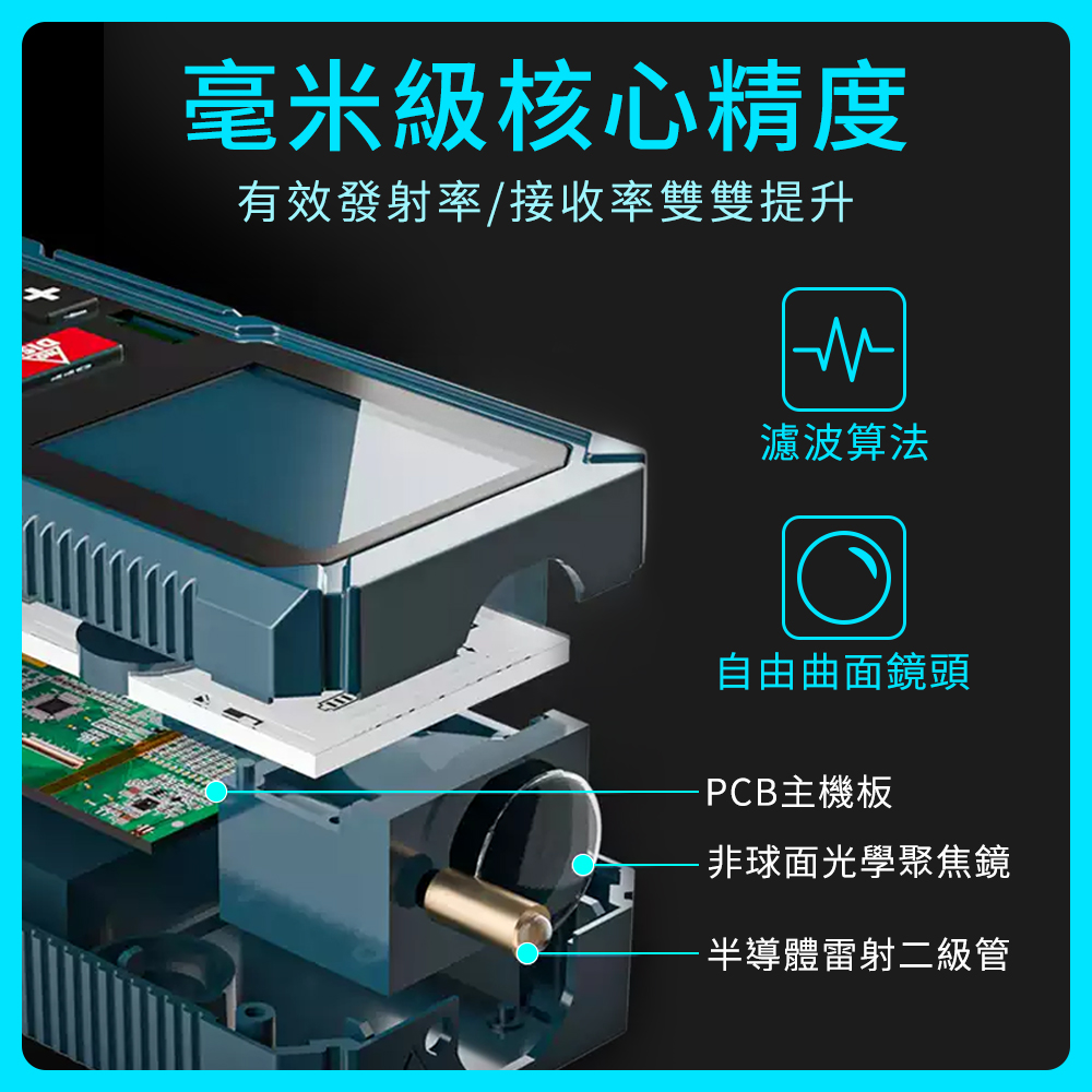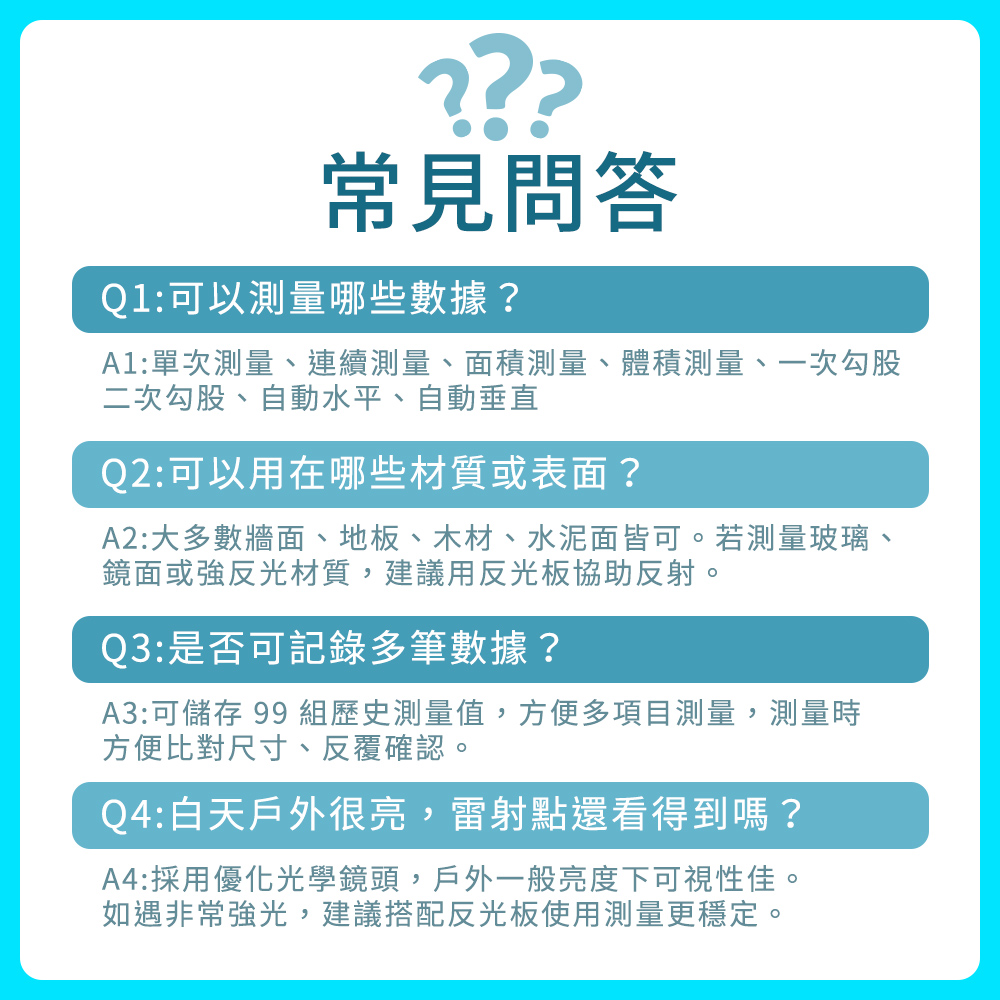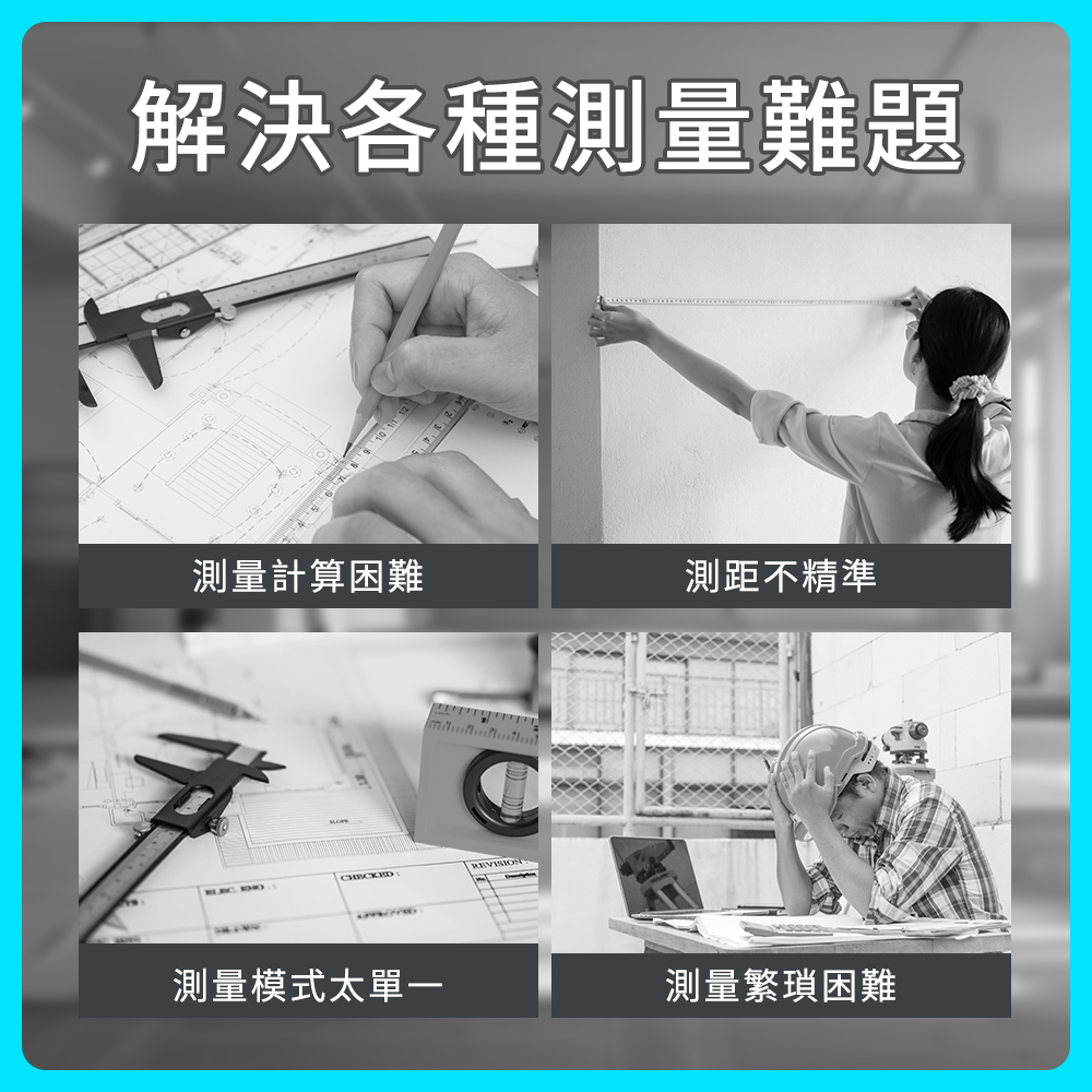 搭載 2 吋高清大螢幕、真人語音播報,室內裝潢、工地現場、工程丈量、配管距離測量,都能在黑暗、塵土飛揚或不便觀看的情況下依然精準讀數。多種測量模式(單次/連續/面積/體積/勾股)、自由曲面鏡頭與濾波演算法讓每次測量穩定可靠,是工程師、技師、工班、裝修師傅不可或缺的高效率工具。