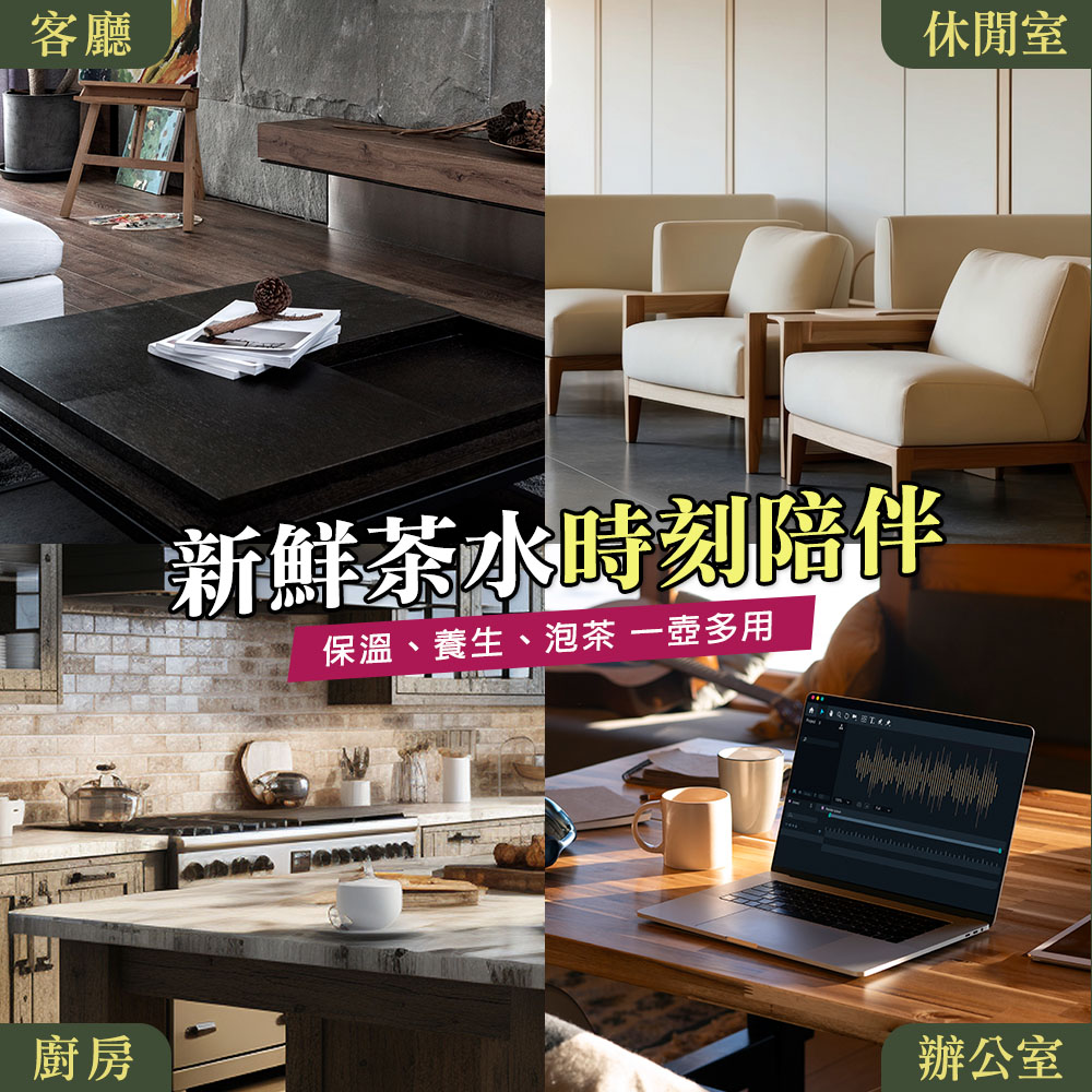 休閒室:800ML 黃金容量,會客時補水不必頻繁重泡,也不用擔心茶水涼掉。