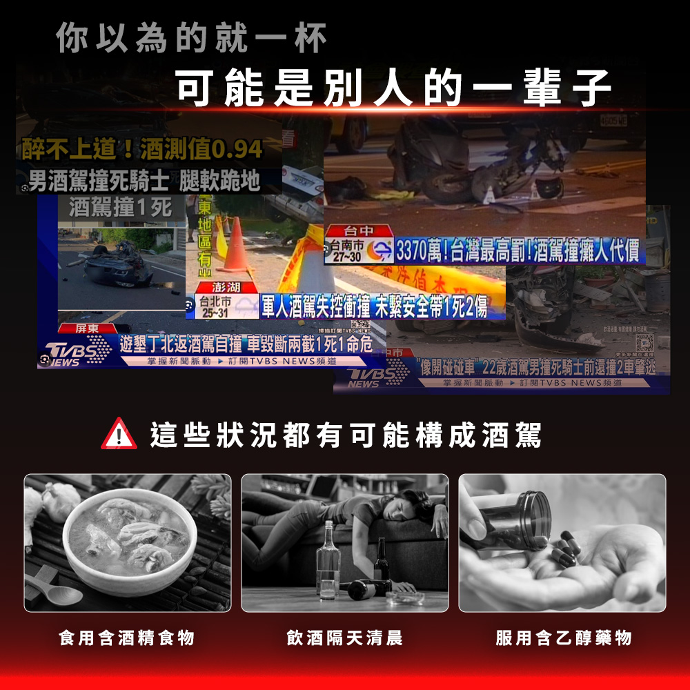 夜間駕駛:確保隔夜酒、少量飲酒後的酒精殘留已完全代謝。