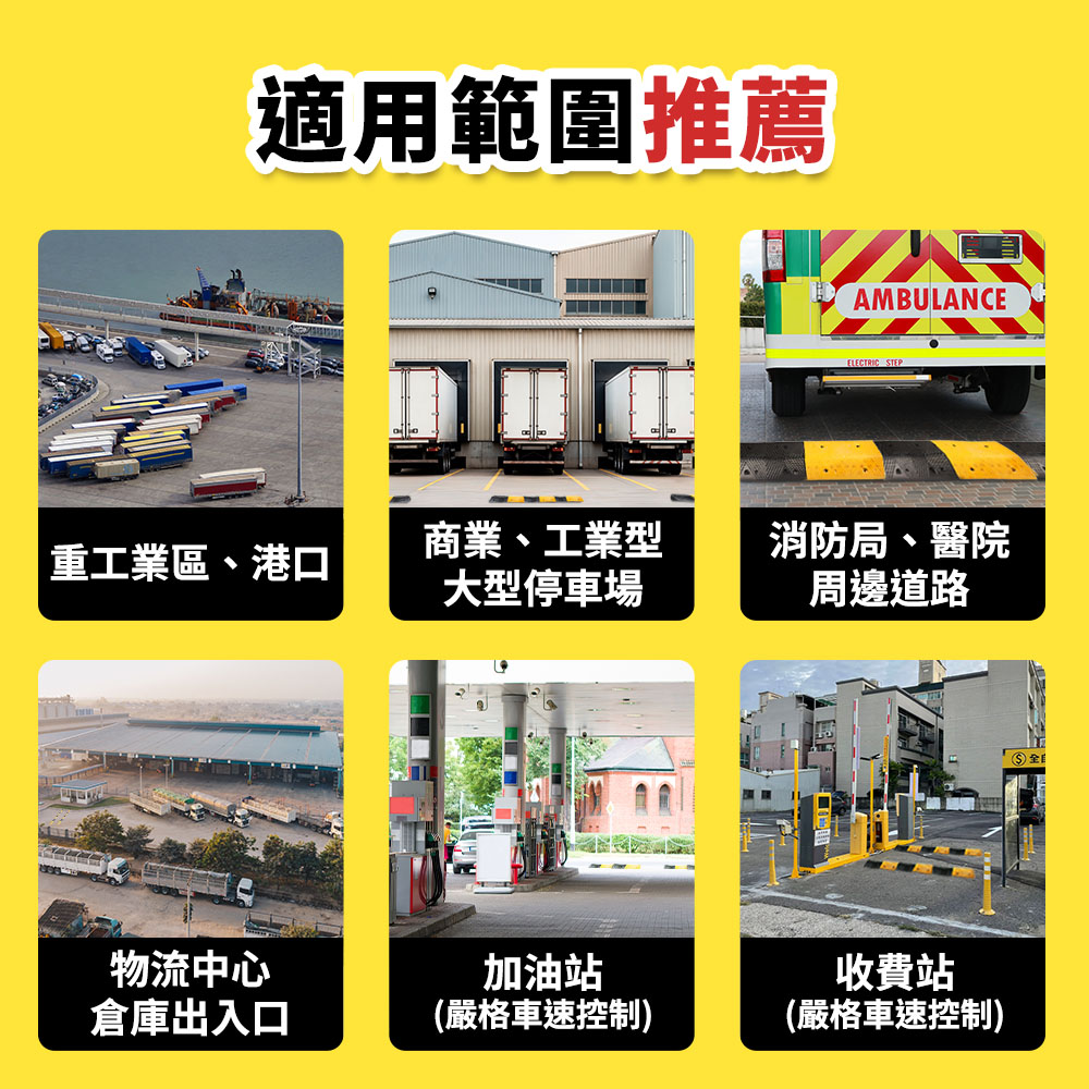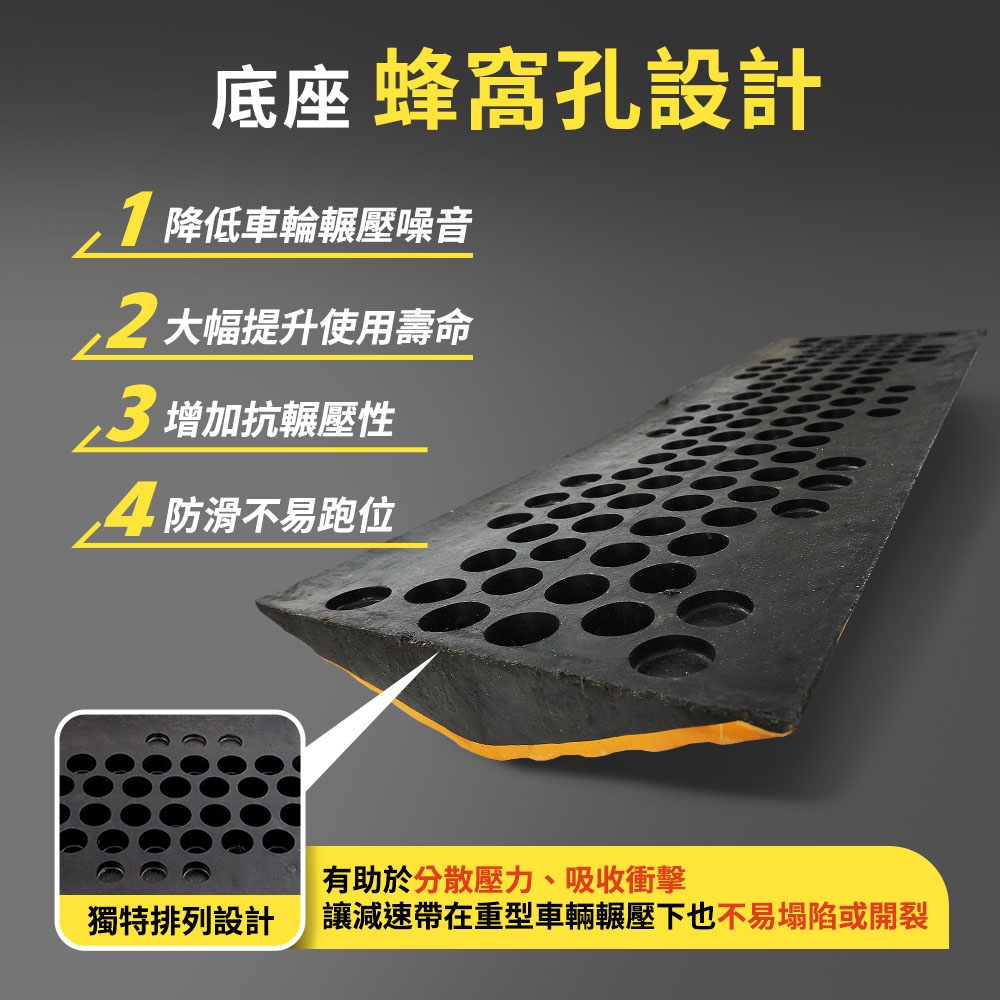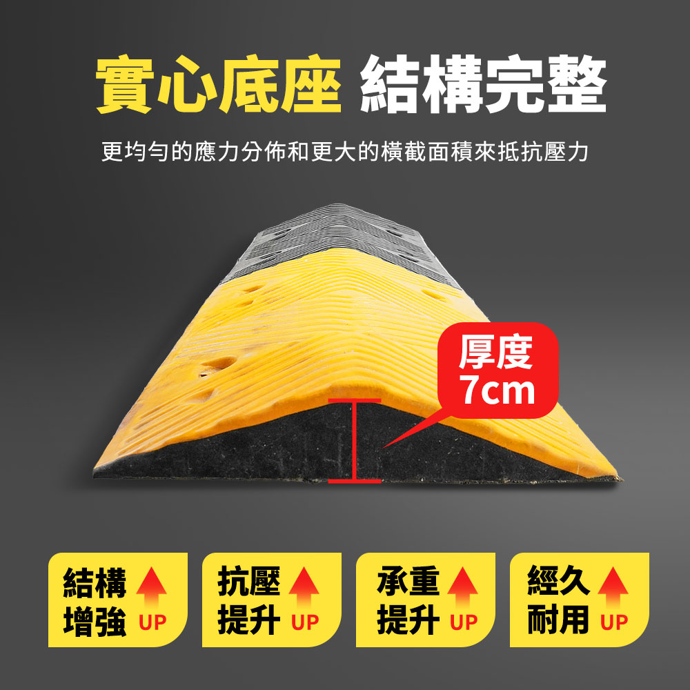 A5:減速帶高度約 7cm,正常低速通過時震動感較溫和,可兼顧減速效果與乘坐舒適度,並減少過大噪音。