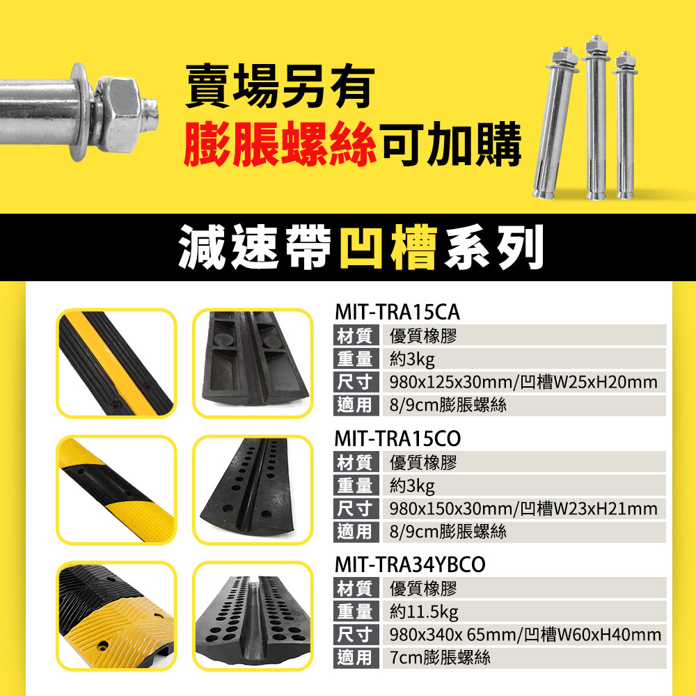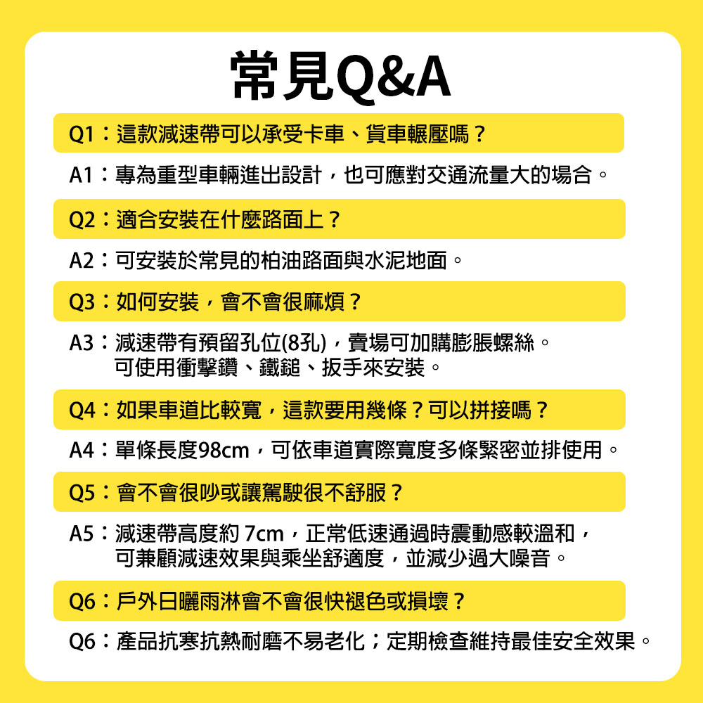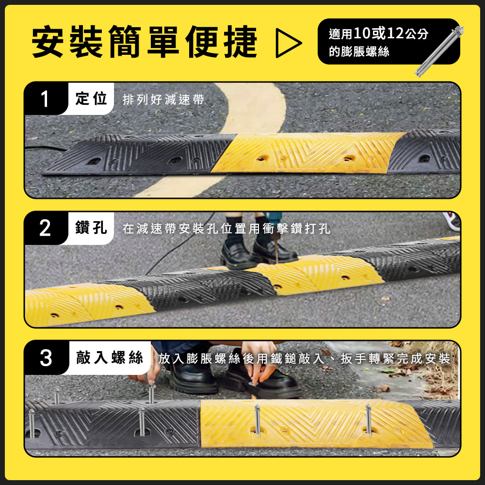 A3:減速帶有預留孔位(8孔),賣場可加購膨脹螺絲。