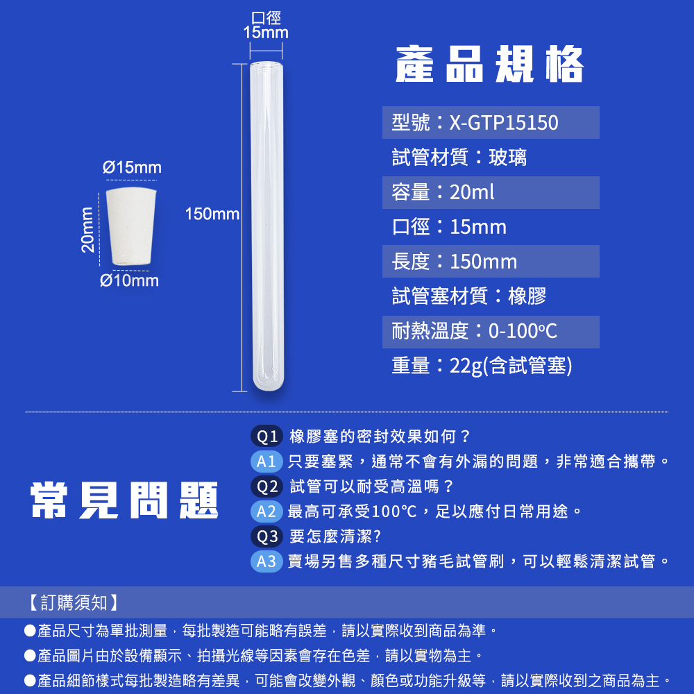 產品名稱:X-GTP15150_玻璃試管 (15x150mm/20ml)