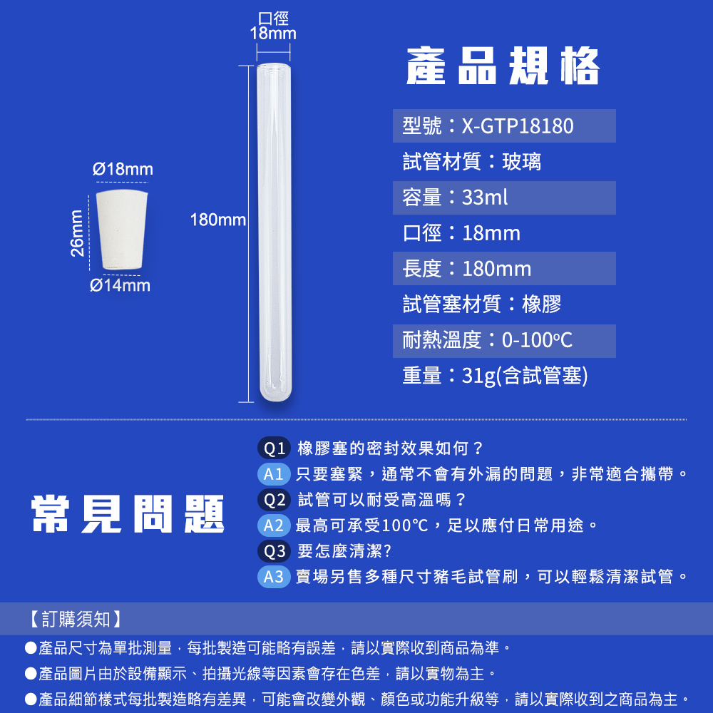 產品名稱:X-GTP18180_玻璃試管 (18x180mm/33ml)