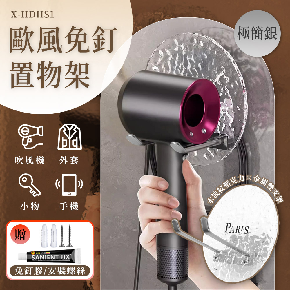 X-HDHS1_歐風免釘置物架(極簡銀)