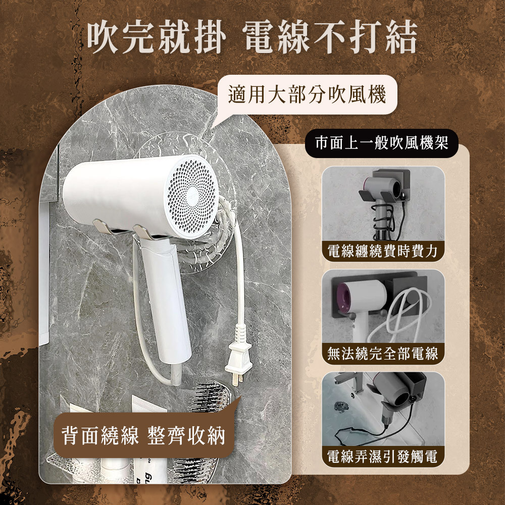 吹風機總是沒位子、浴室台面越放越亂?歐風免釘置物架,用“水波紋壓克力背板 × 消光金屬雙掛勾”一次解決收納與質感。免鑽孔免破壞,附贈免釘膠與螺絲兩用安裝,磁磚、玻璃、金屬等平整牆面都能穩固承重。吹風機、外套、鑰匙、手機,掛起來就整齊;入門玄關、浴室、臥室皆適用。今天開始,把雜亂變成高級感。